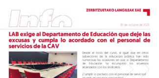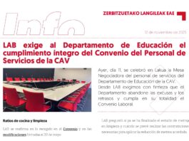 Personal de Servicios de la CAV: LAB exige al Departamento de Educación el cumplimiento íntegro