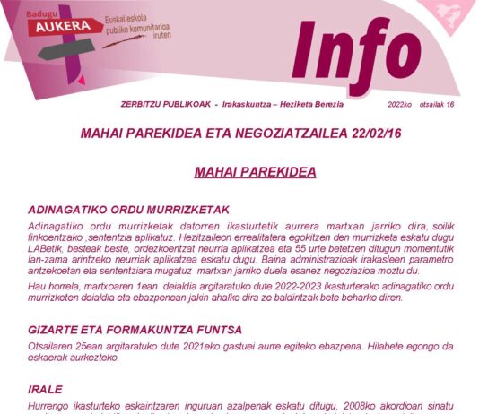 Irakasleak EAE: Hezkuntza publikoa indartzeko baliabideetan inbertitzea ezinbestekoa da