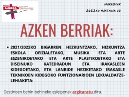 EAEko Irakasleen merezimendu-lehiaketaren prozedura azaltzeko bilera irekiak antolatu ditugu