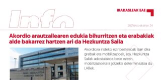 EAEko Irakasleak: Akordioa bere osotasunean betetzen ez den ikastetxeetan mobilizazioak deitu ditu LABek abenduaren 18an