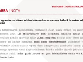 EAEko zerbitzuetako langileak: LABetik egin dugun lanari esker Hezkuntza Sailak atzera...
