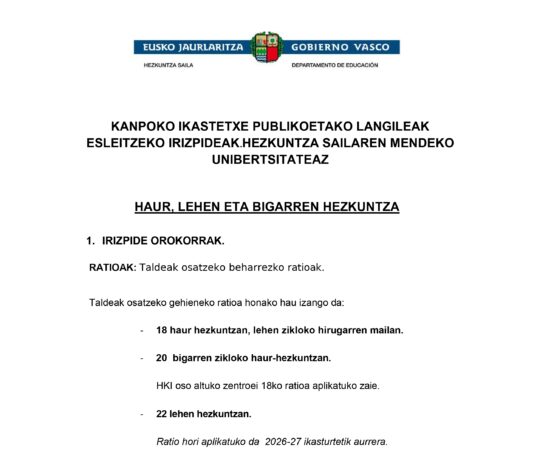 EAEko hezkuntza publikoko irakasleen lan-hitzarmen berria (2025eko maiatza)
