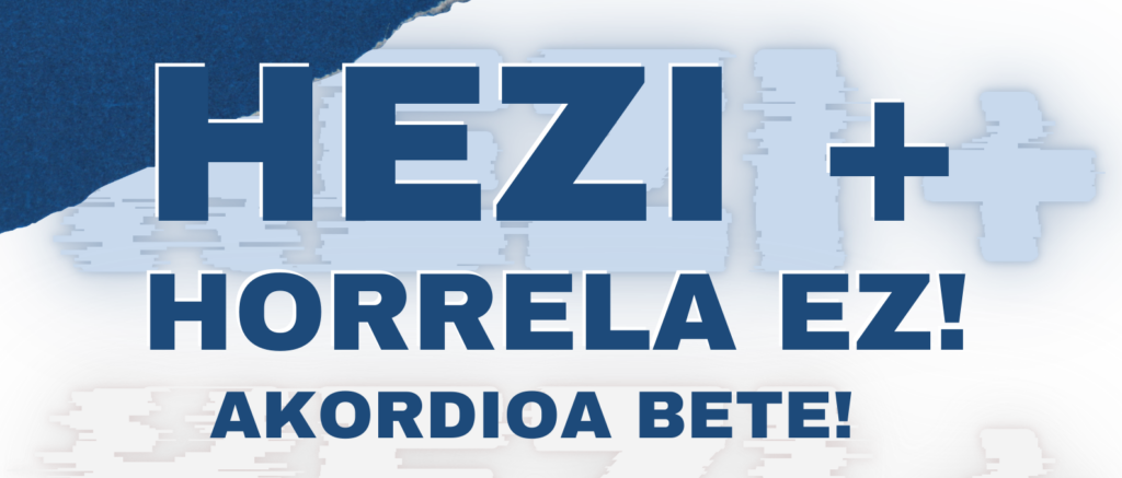 Horrez gain, Hezkuntza Sailak 2025eko maiatzaren 9an sinatutako akordio arautzailean adostutako puntu garrantzitsu bat osotasunean bete gabe jarraitzen du oraindik, eskola-orduen jaitsieragatiko beharrezkoak diren baliabideak esleitzea, alegia; orain, gainera, HEZI+ ebazpenarekin, beste pausu bat eman du akordioaren urraketan, bigarren hezkuntzan gehienezko 17 eskola-orduei ordubete gehitzeari atea irekiz.