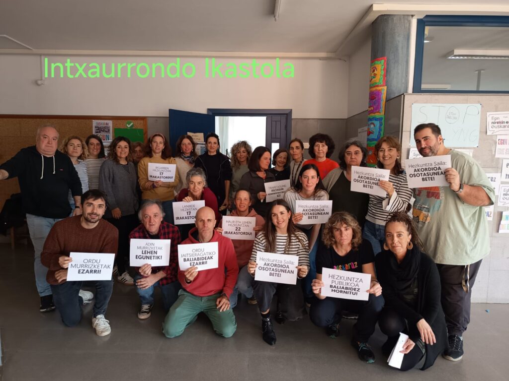 Hezkuntza Sailak %80a ordezkatzen duten sindikatuekin maiatzaren 9an sinatutako akordioan jasotzen diren hainbat puntu ez direla betetzen ari salatu dute hamarnaka ikastetxetako ehunka irakaslek.