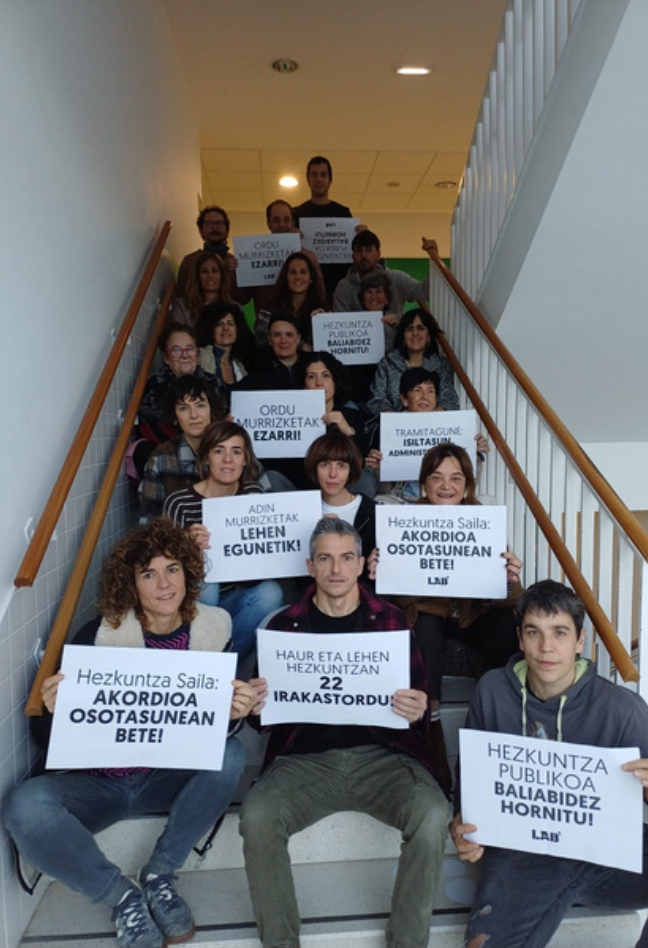 LABek, gehiengo zabala osatzen duten STEILAS, Interinok taldea eta CCOO sindikatuekin batera, Araba, Bizkaia eta Gipuzkoako irakasleen akordio arautzailea (lan-hitzarmena) erdiestea lortu zuen maiatzaren 9an, urtarriletik apirila bitarte burututako hamaika mobilizazio eta bederatzi greba egunen ondoren. LABek adierazi duenez, sinatutako akordioaren bitartez hezkuntza publikoan urrats sendoak eman dira irakasleen hezkuntza kalitatean; izan ere, irakasleen lan baldintzak nabarmen hobetu dira eta ikasturte honetan zein datozen bi ikasturteetan zehar baliabide eta figura berriez hornituko dira ikastetxeak.