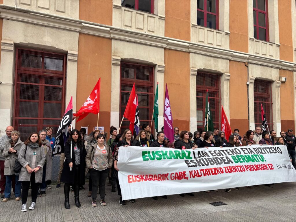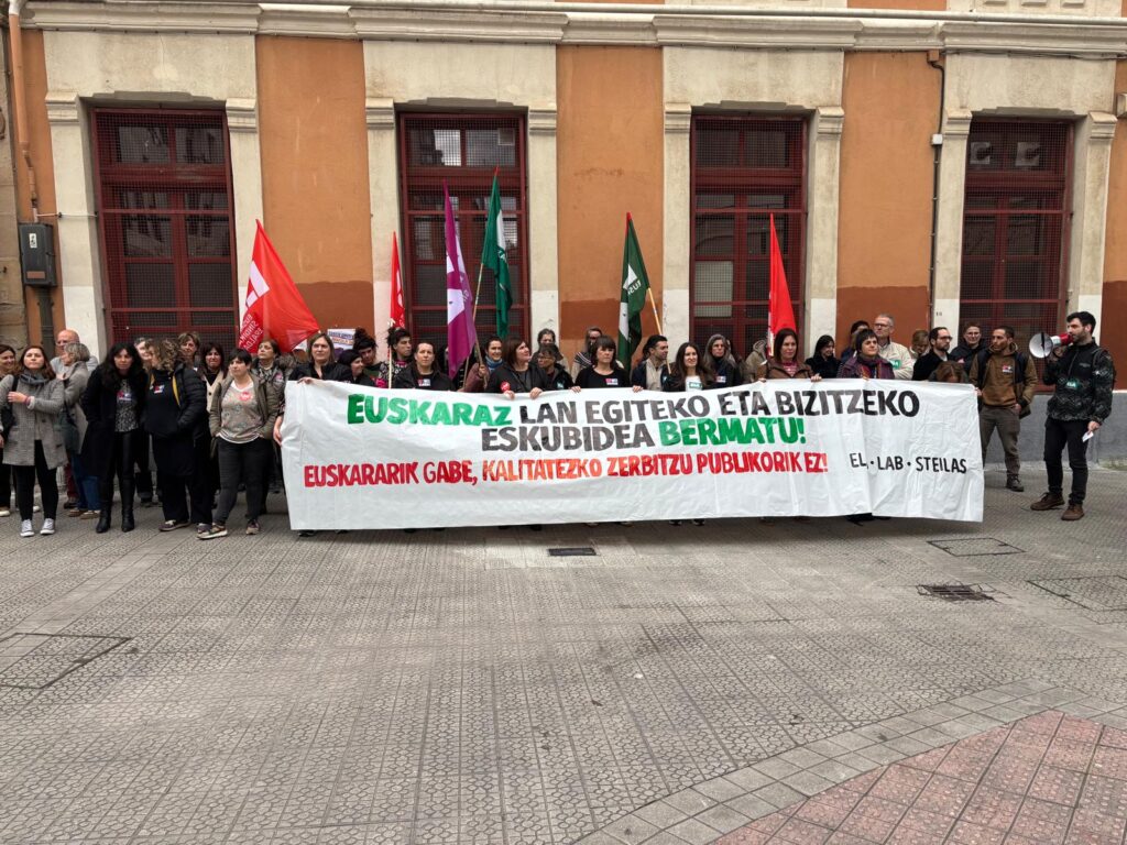 Udal, foru aldundi, ikastetxe publiko, ospitale publiko eta Jaurlaritzaren egoitzen aurrean mobilizatu dira gaur langileak, administrazio publikoak interpelatzeko. Izan ere, erakunde publiko horietan ez daude bermatuta euskaraz lan egiteko eta zerbitzuak euskaraz jasotzeko eskubidea; are, arrisku larrian daude.