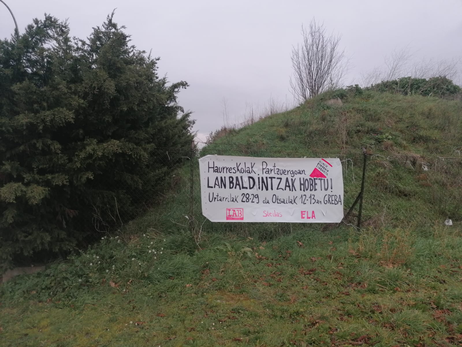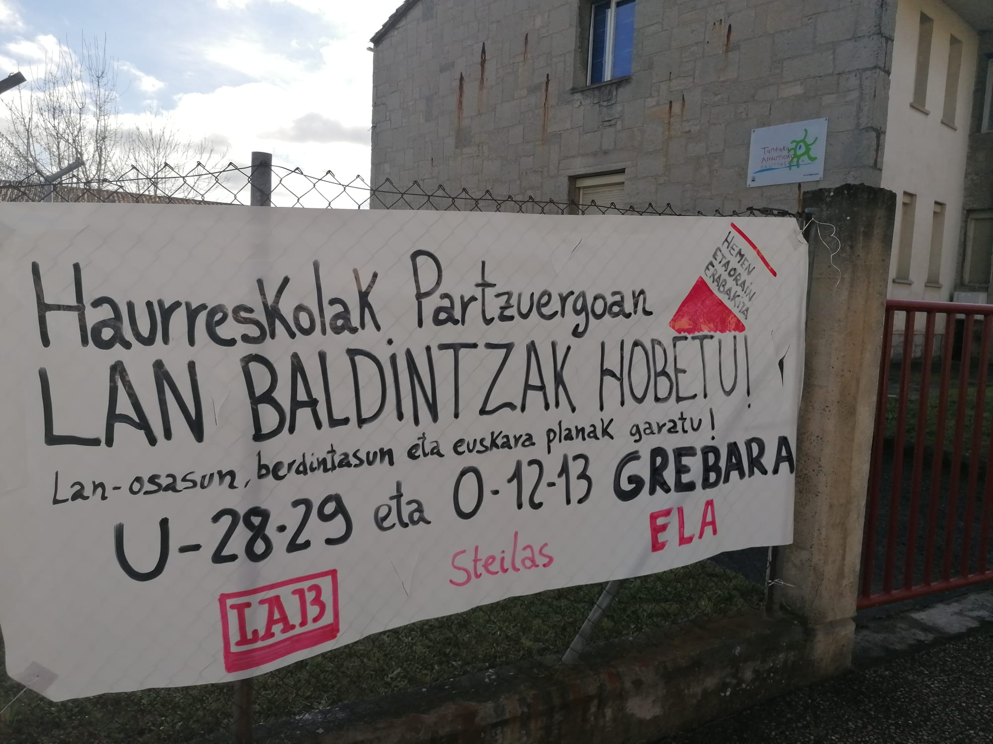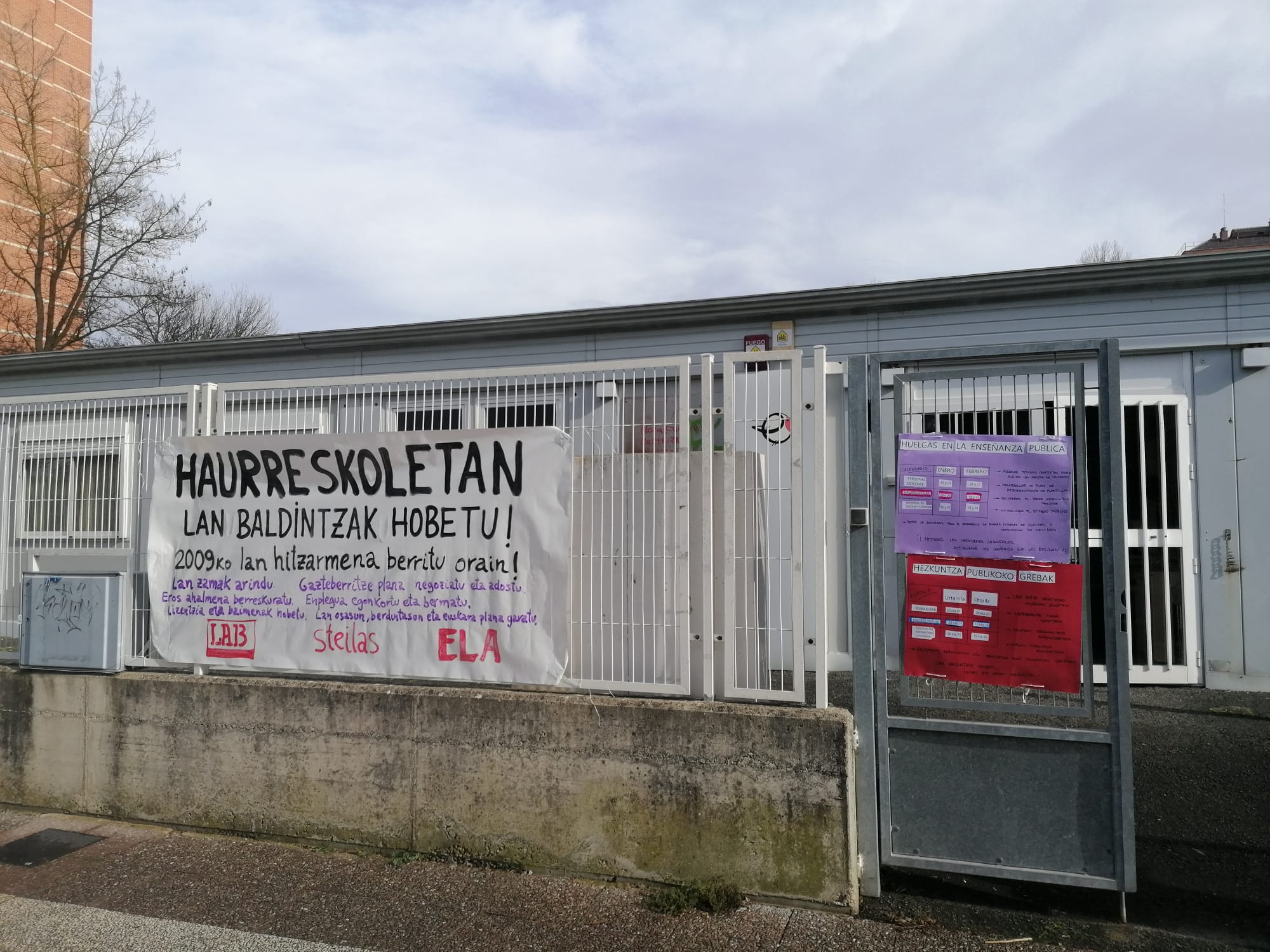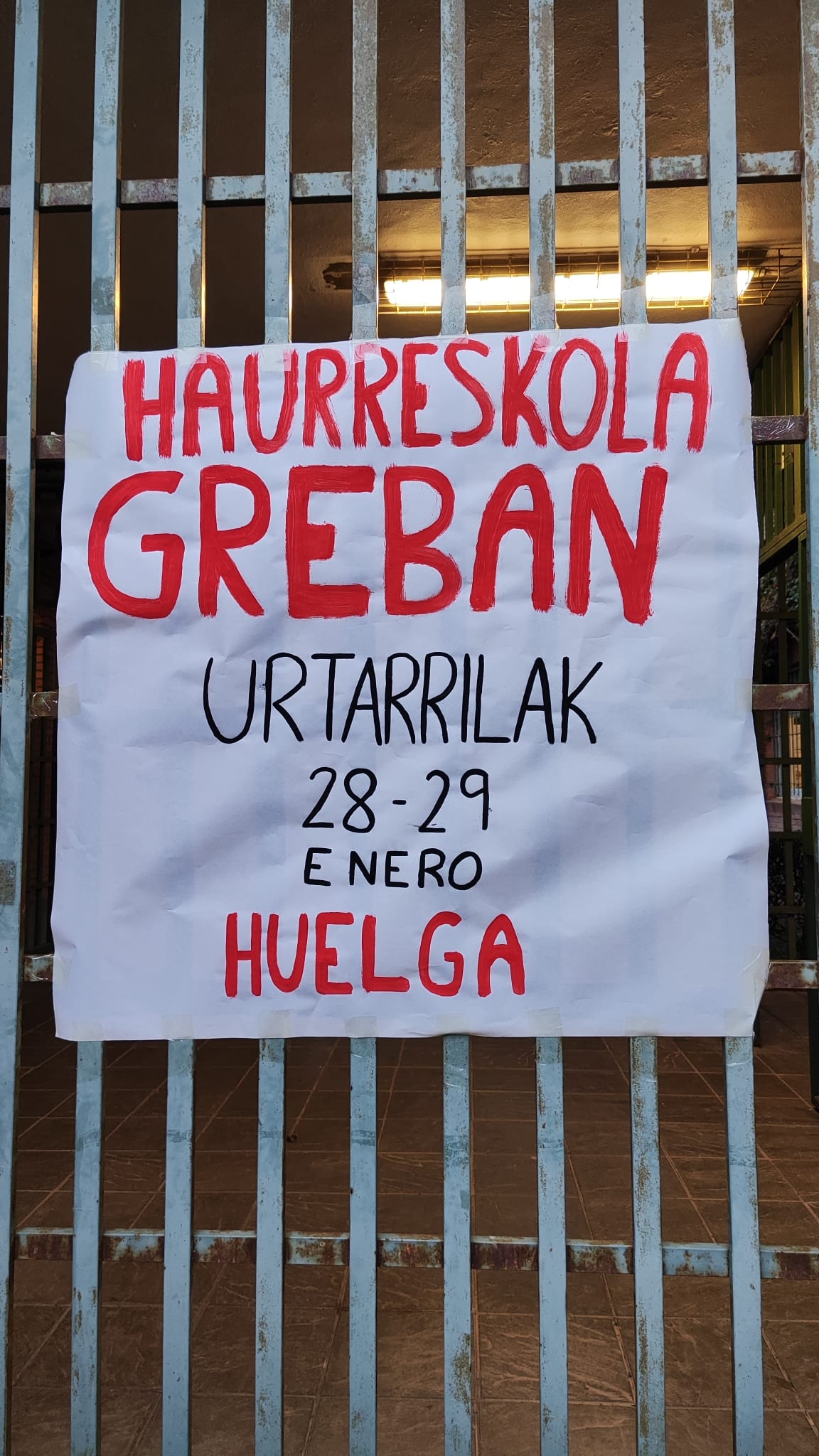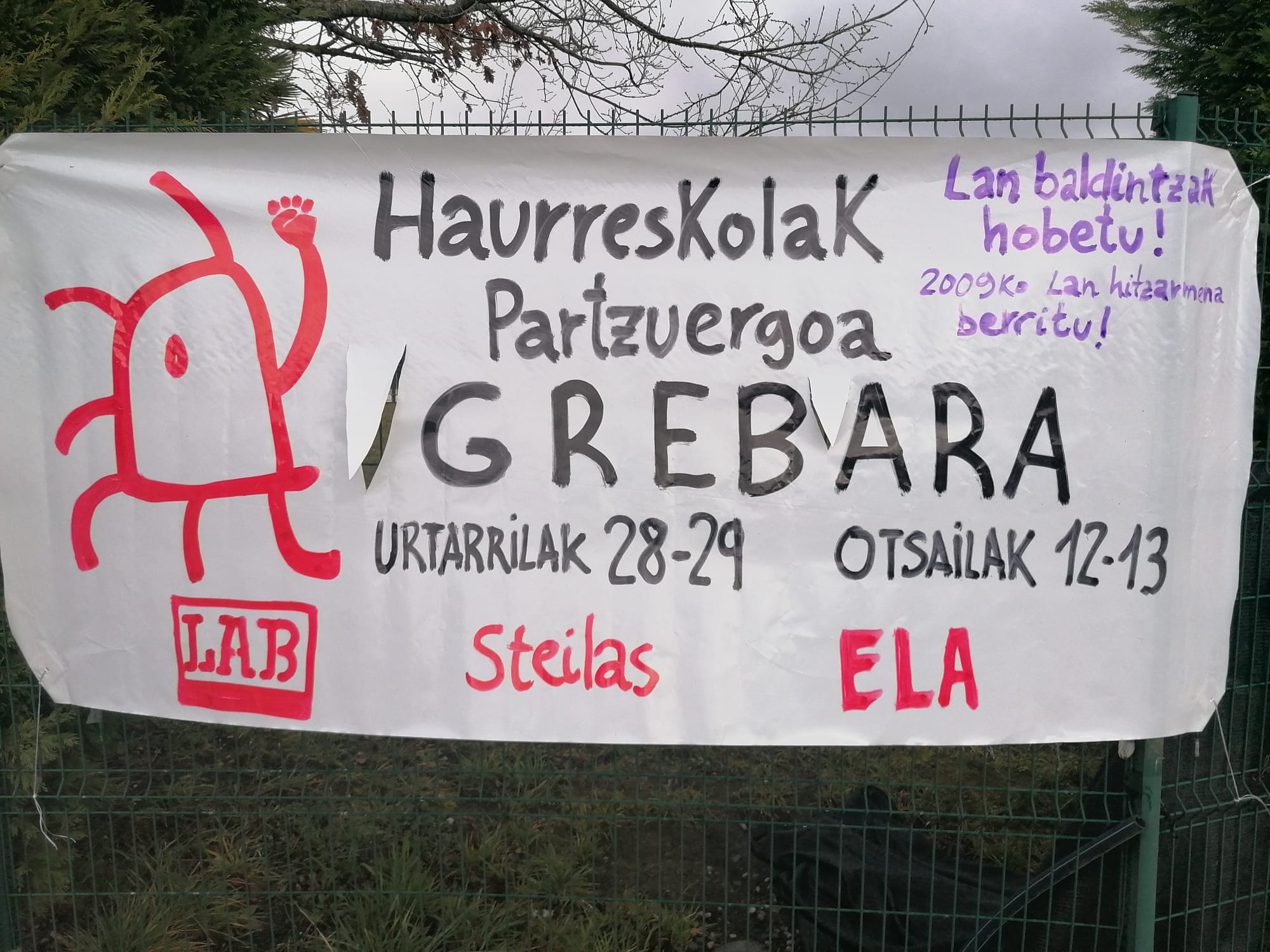 LAB, STEILAS eta ELA sindikatuok aurkeztutako mobilizazio eta greba dinamikarekin batera, urtarrilaren 17tik aurrera haurreskolen kanpoaldea borrokan gaudela irudikatzera animatzen zaituztegu (amantalak eskegi, kartelak zein pankartak jarri…).
