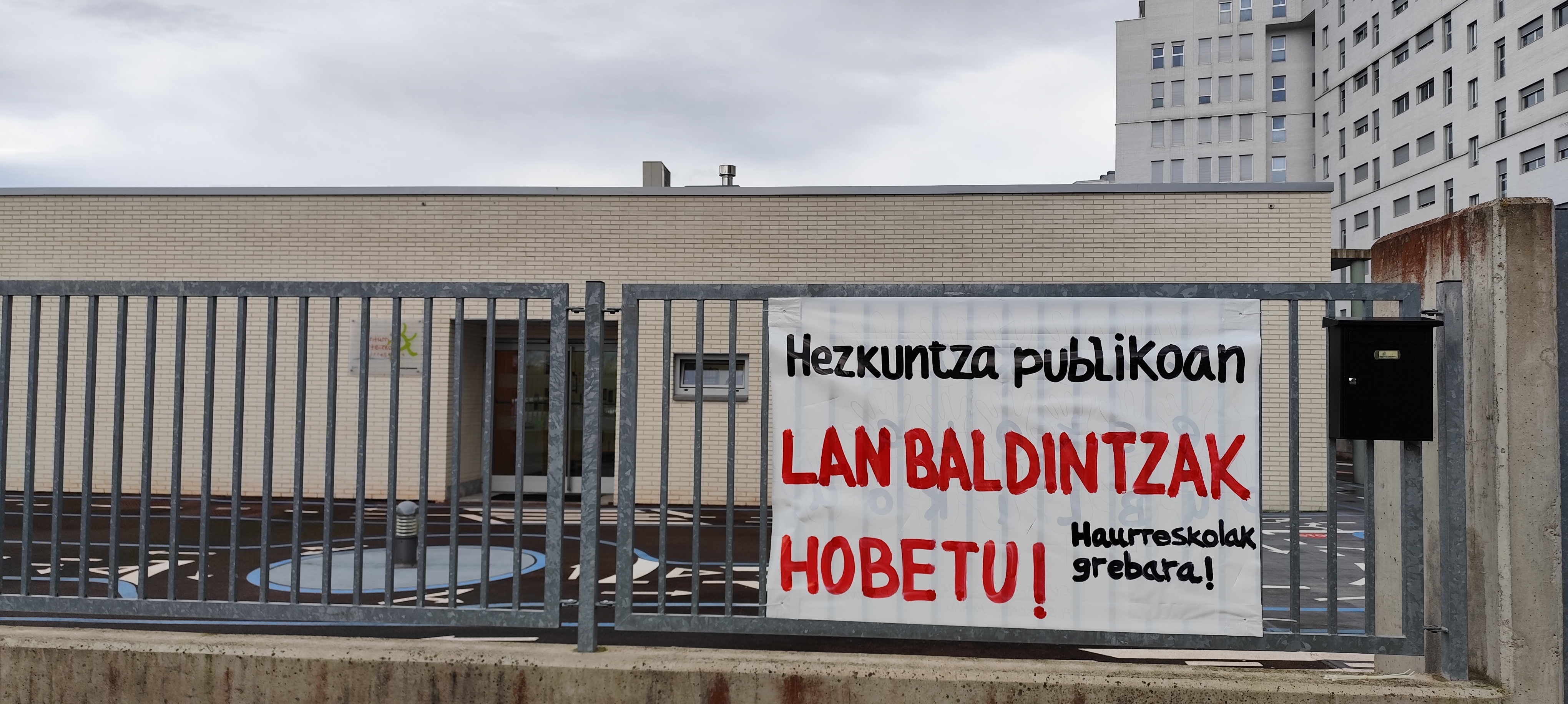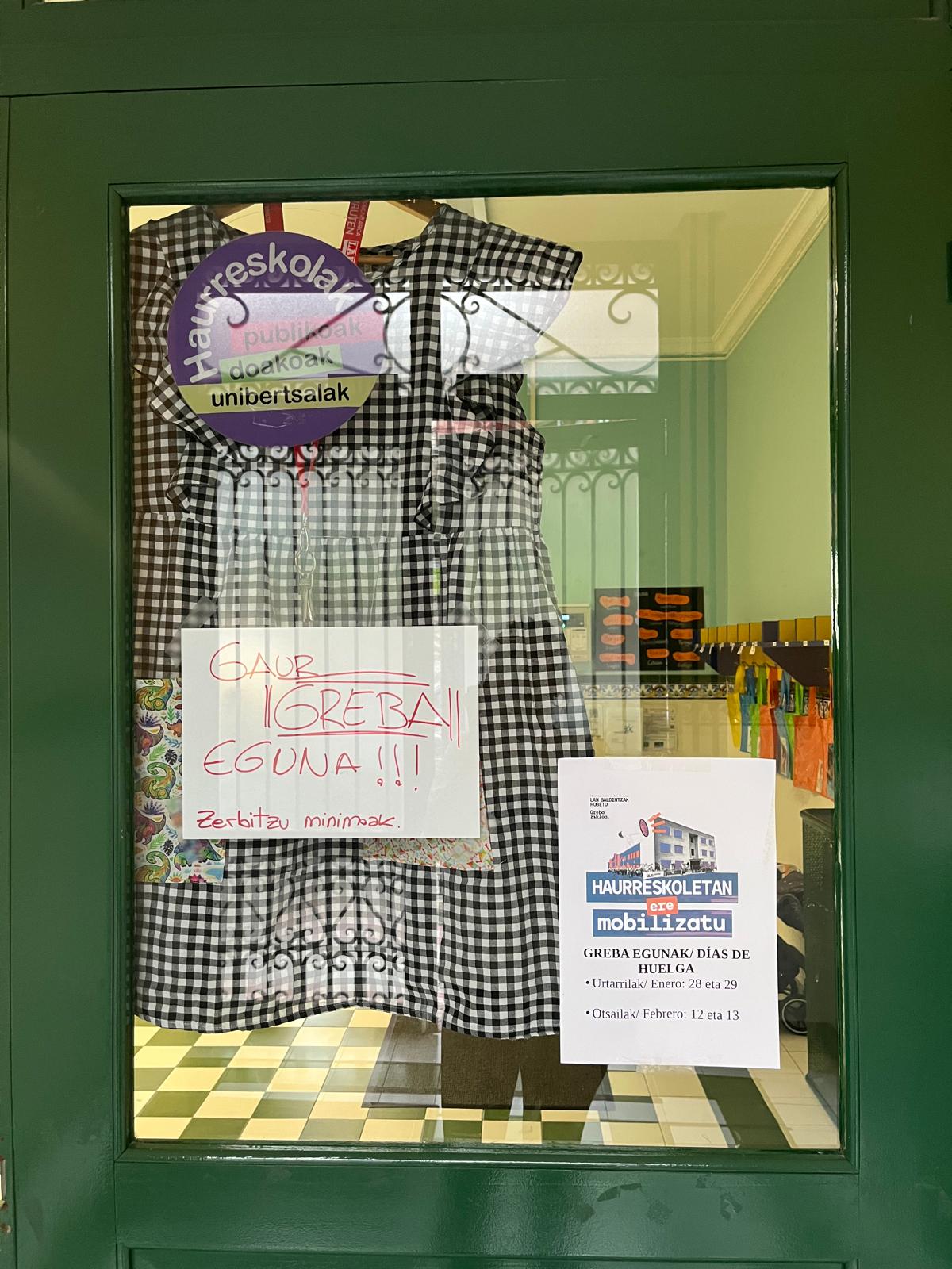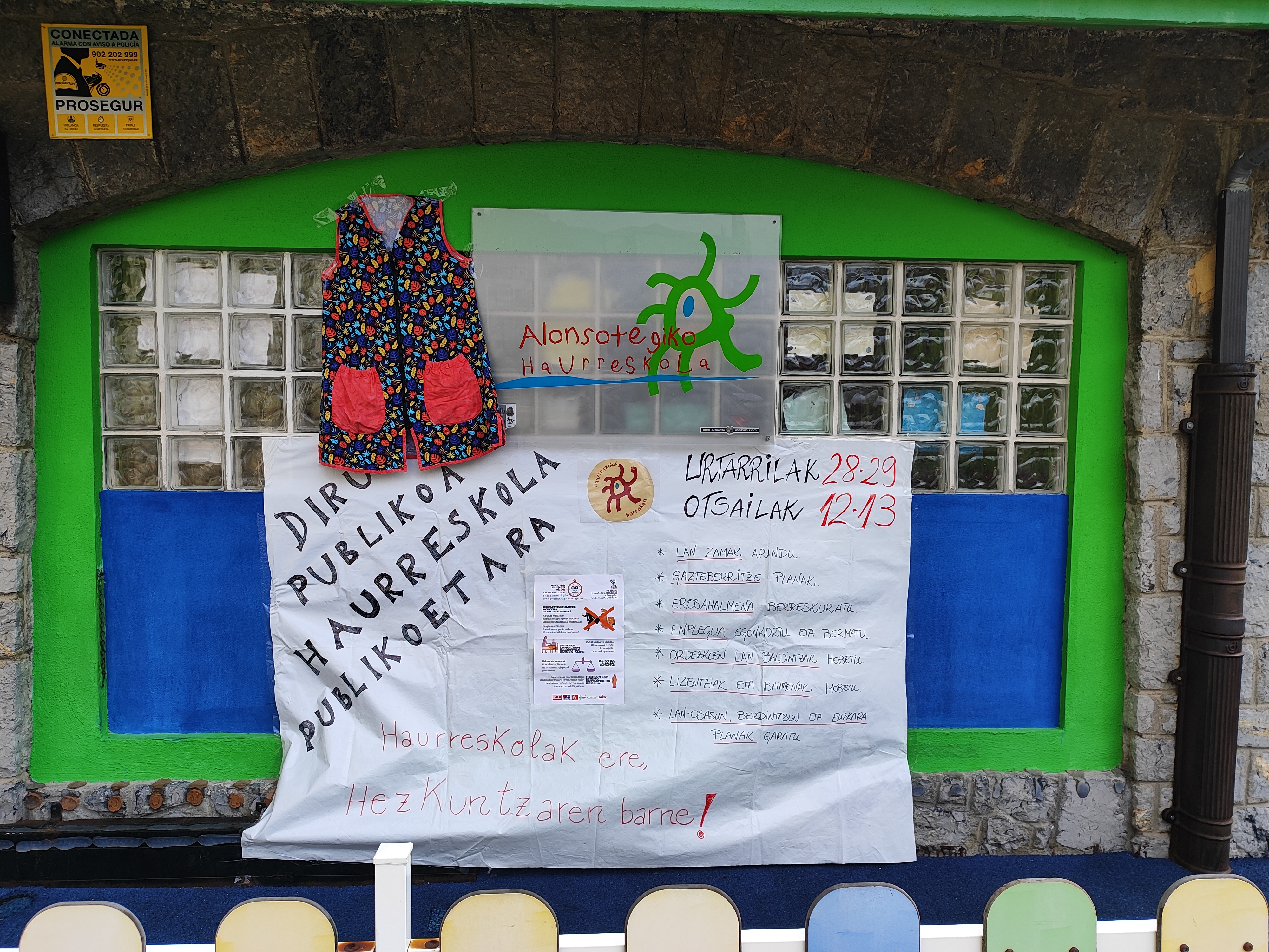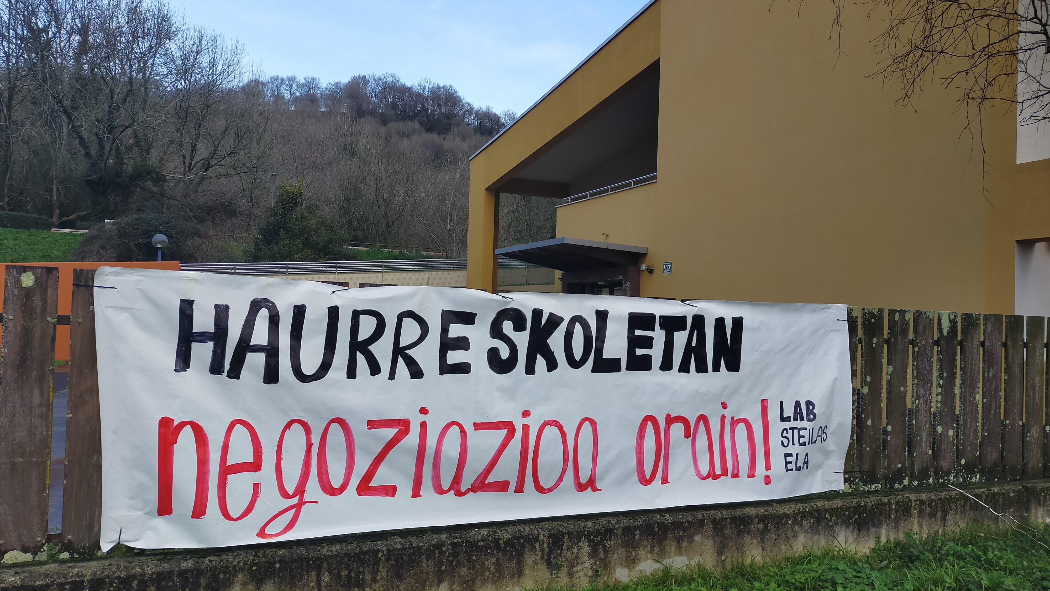 LAB, STEILAS eta ELA sindikatuok aurkeztutako mobilizazio eta greba dinamikarekin batera, urtarrilaren 17tik aurrera haurreskolen kanpoaldea borrokan gaudela irudikatzera animatzen zaituztegu (amantalak eskegi, kartelak zein pankartak jarri…).