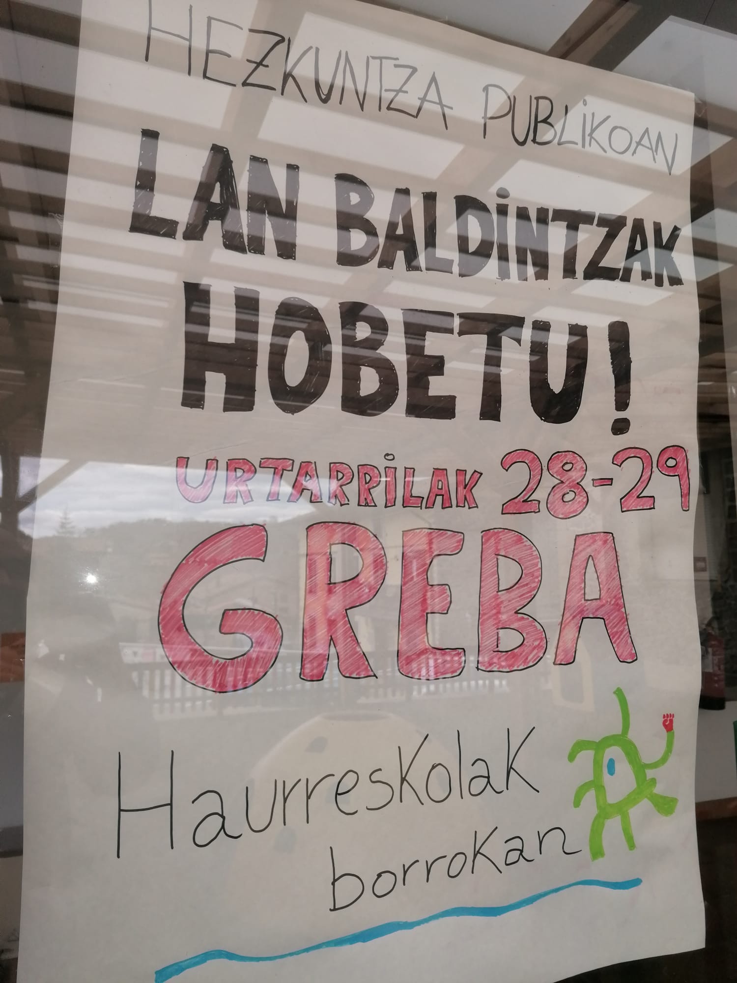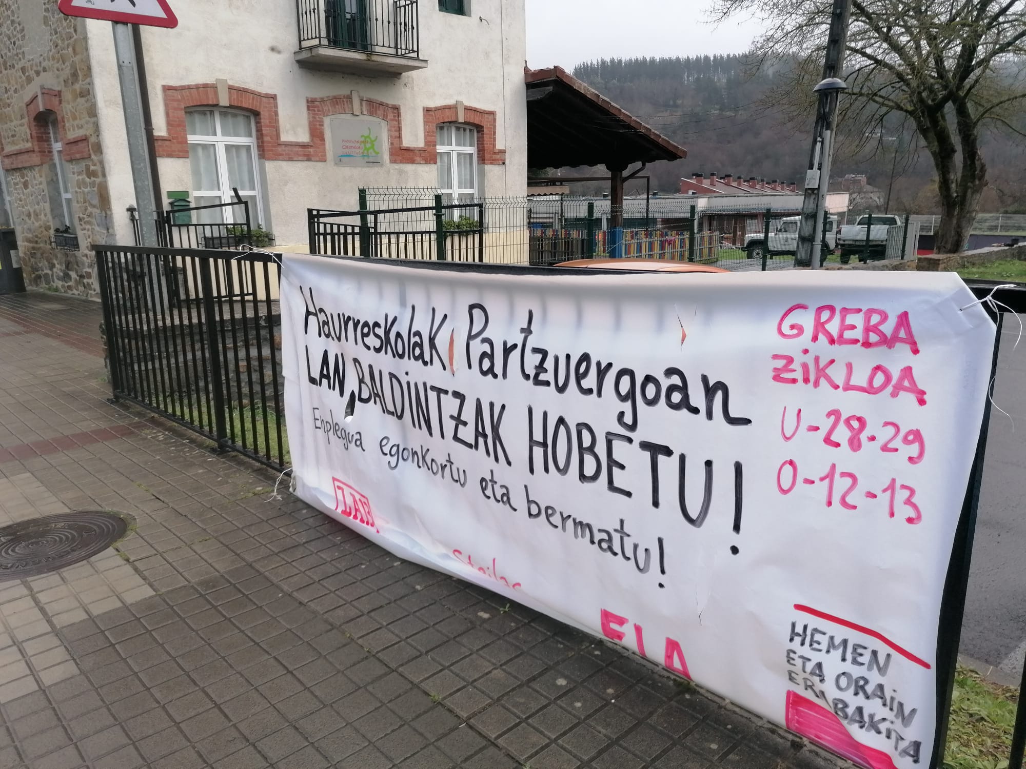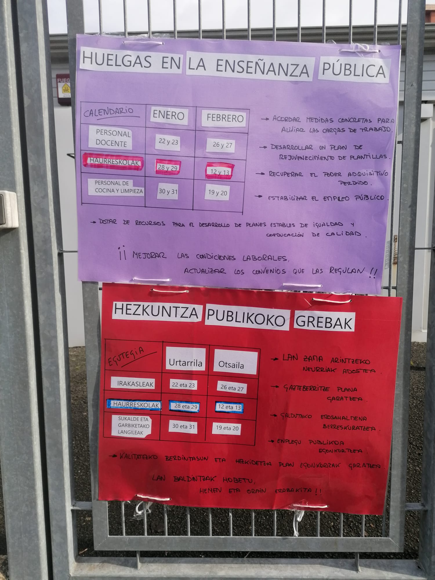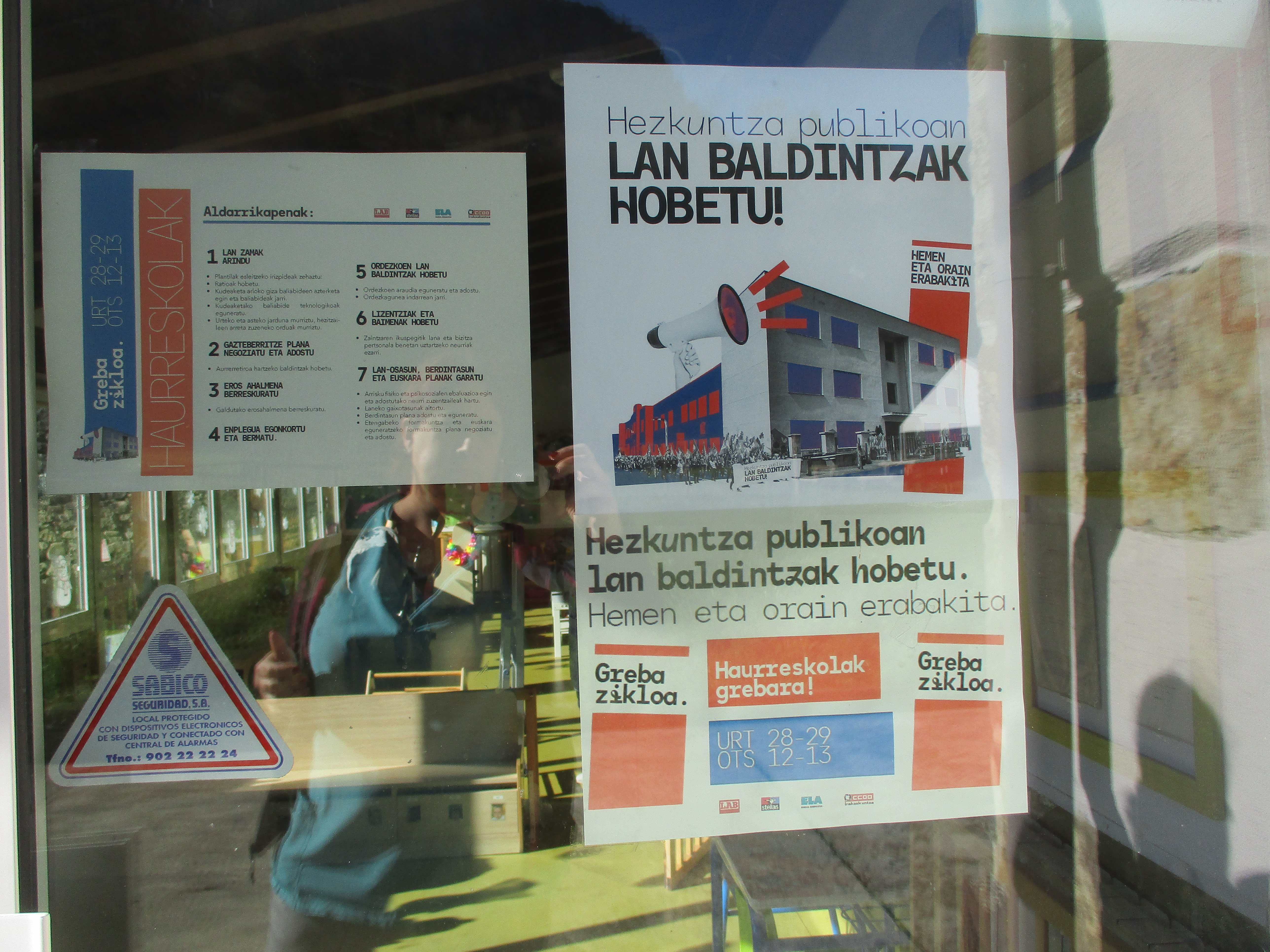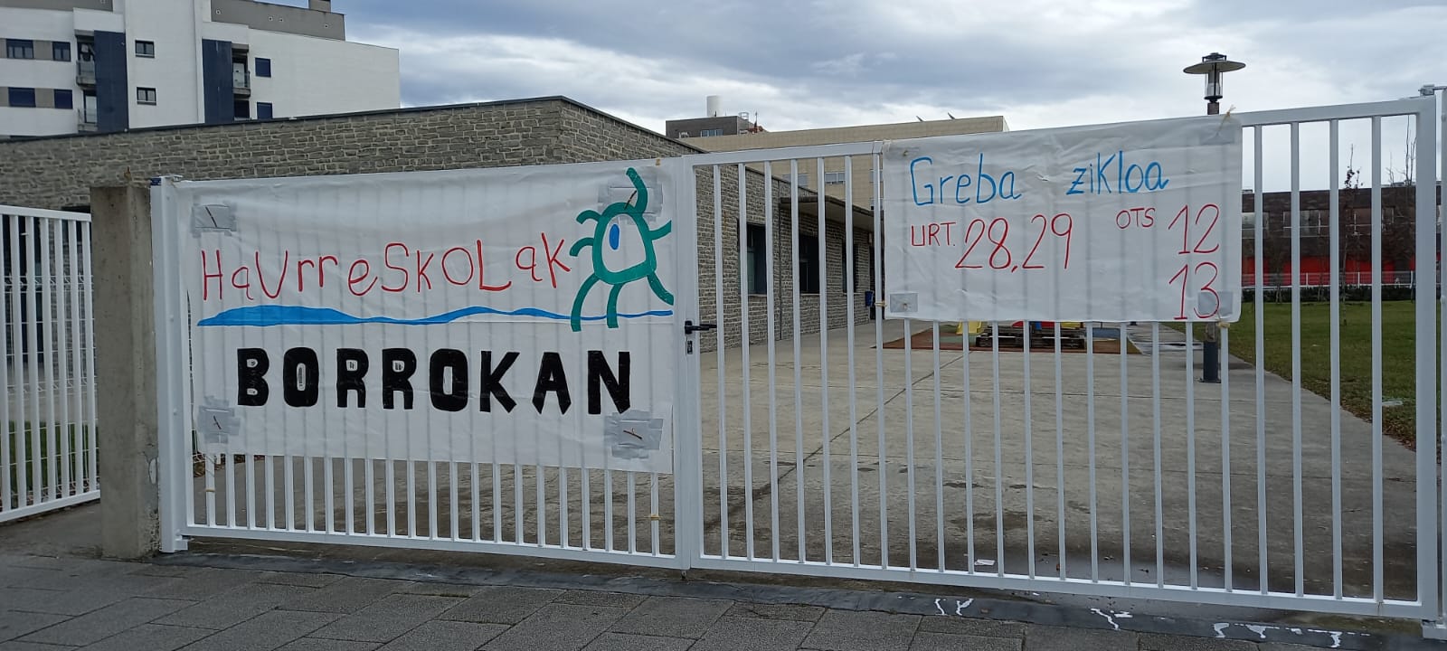 LAB, STEILAS eta ELA sindikatuok aurkeztutako mobilizazio eta greba dinamikarekin batera, urtarrilaren 17tik aurrera haurreskolen kanpoaldea borrokan gaudela irudikatzera animatzen zaituztegu (amantalak eskegi, kartelak zein pankartak jarri…).
