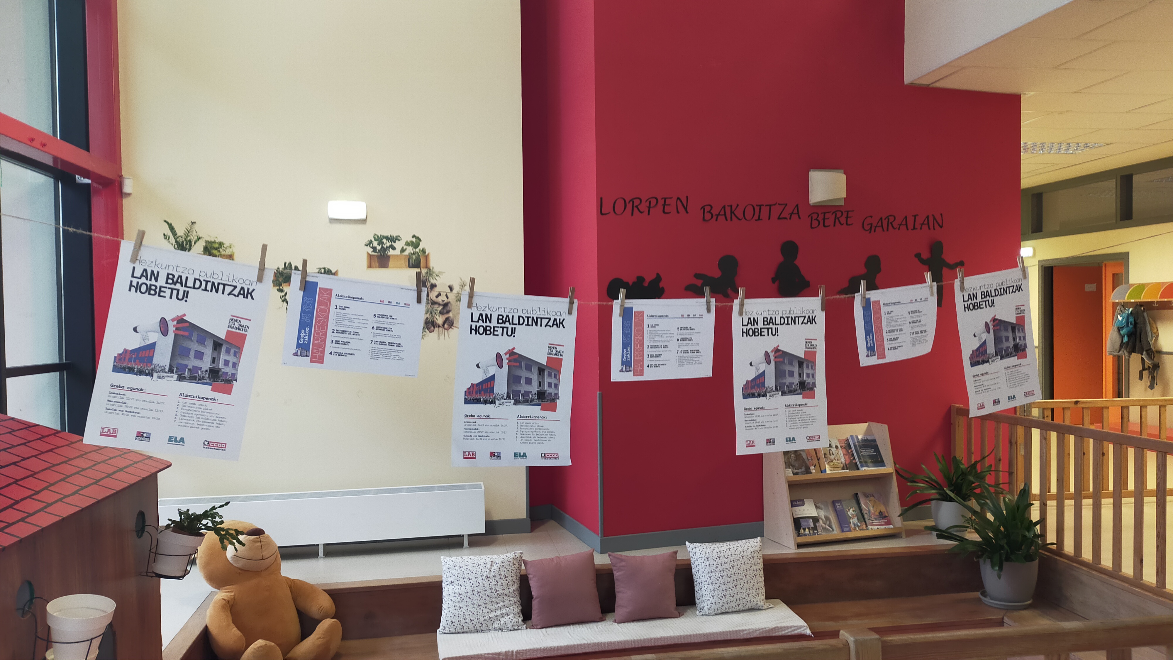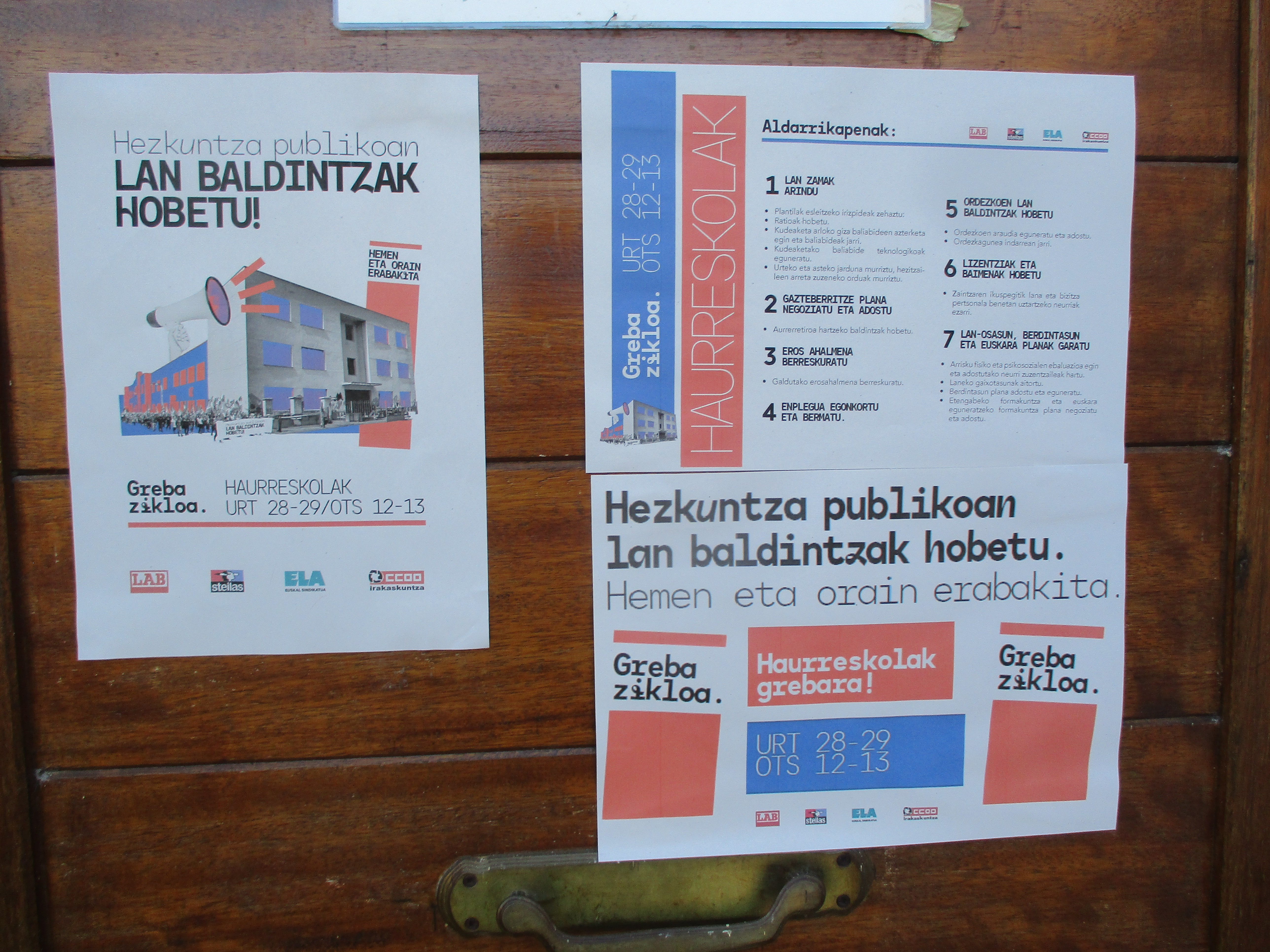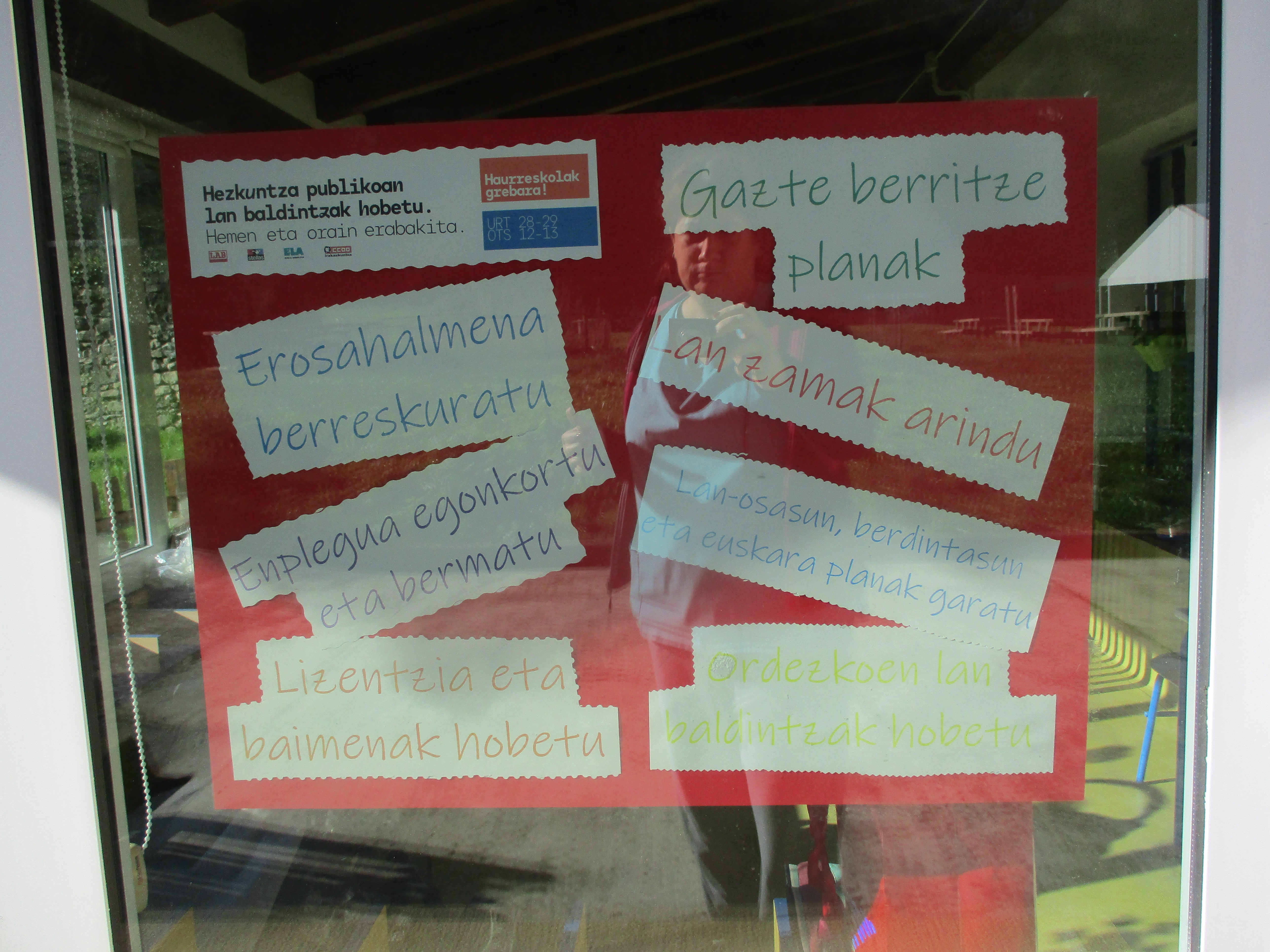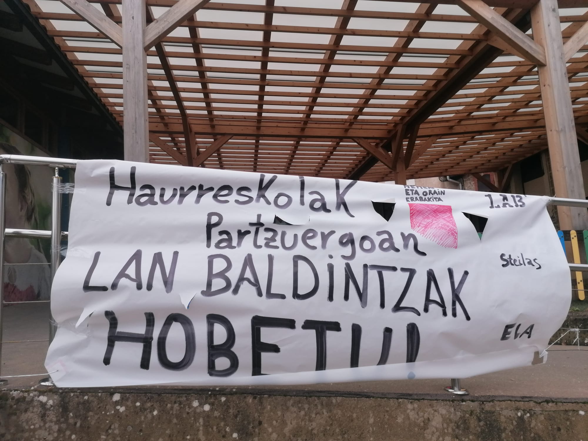 LAB, STEILAS eta ELA sindikatuok aurkeztutako mobilizazio eta greba dinamikarekin batera, urtarrilaren 17tik aurrera haurreskolen kanpoaldea borrokan gaudela irudikatzera animatzen zaituztegu (amantalak eskegi, kartelak zein pankartak jarri…).