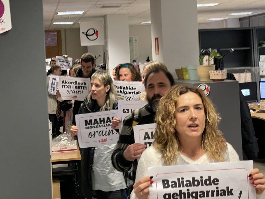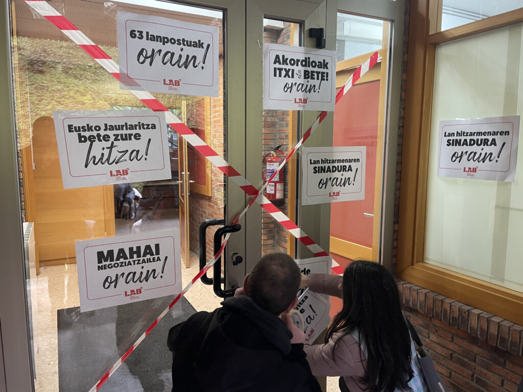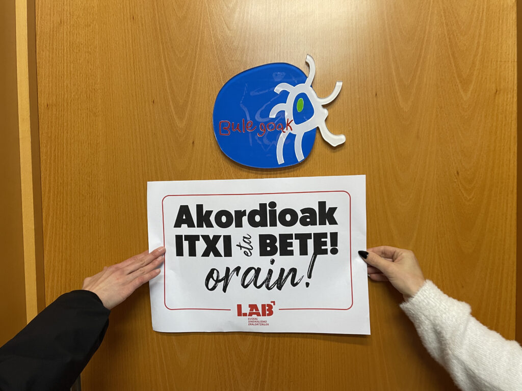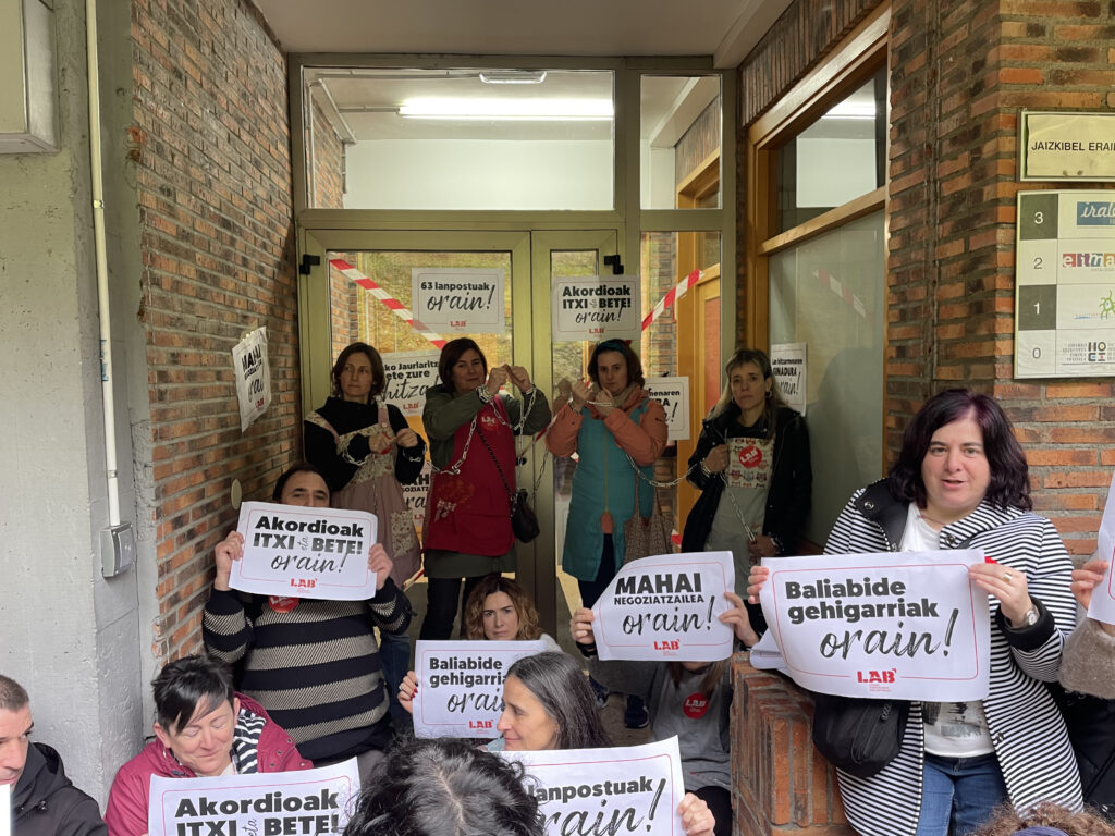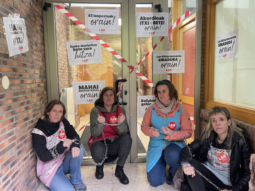 Gaur, LAB sindikatuko ordezkariak Haurreskolak Partzuergoko atari nagusian kateatu dira, Hezkuntza Sailak eta Haurreskolak Partzuergoak negoziazioari ezarritako blokeo zentzugabea salatzeko. “Haurreskoletako langileenganako begirune falta izugarria erakusten ari da Hezkuntza Saila”, adierazi dute. Era berean, mahai negoziatzailea urgentziaz deitzeko eskaera erregistratu du sindikatuak.