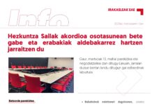 LAB sindikatua Lan Hitzarmenaren jarraipen etengabea egiten ari da ikasturte hasieratik, adostutakoa bere osotasunean betetzen dela bermatzeko.