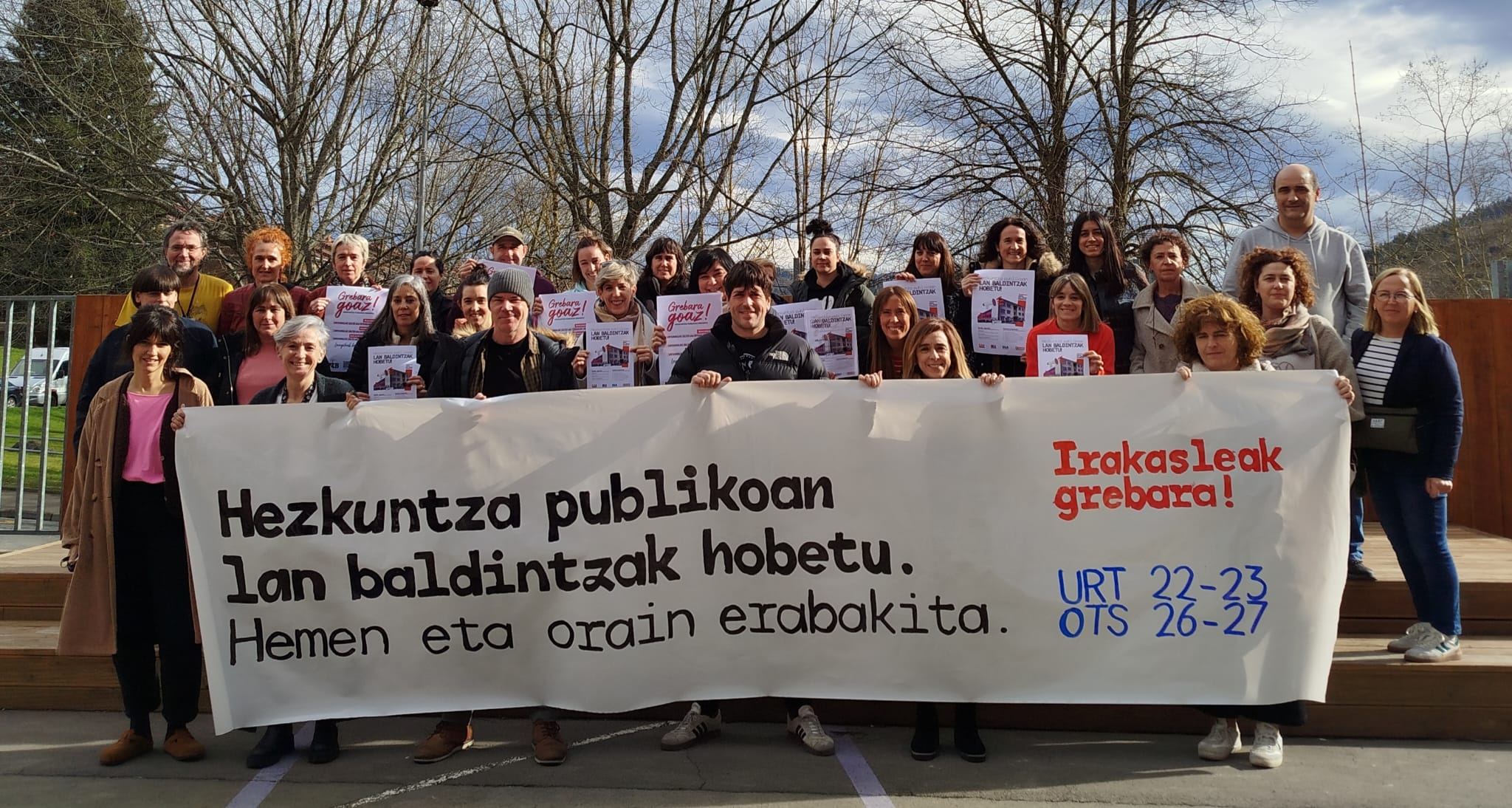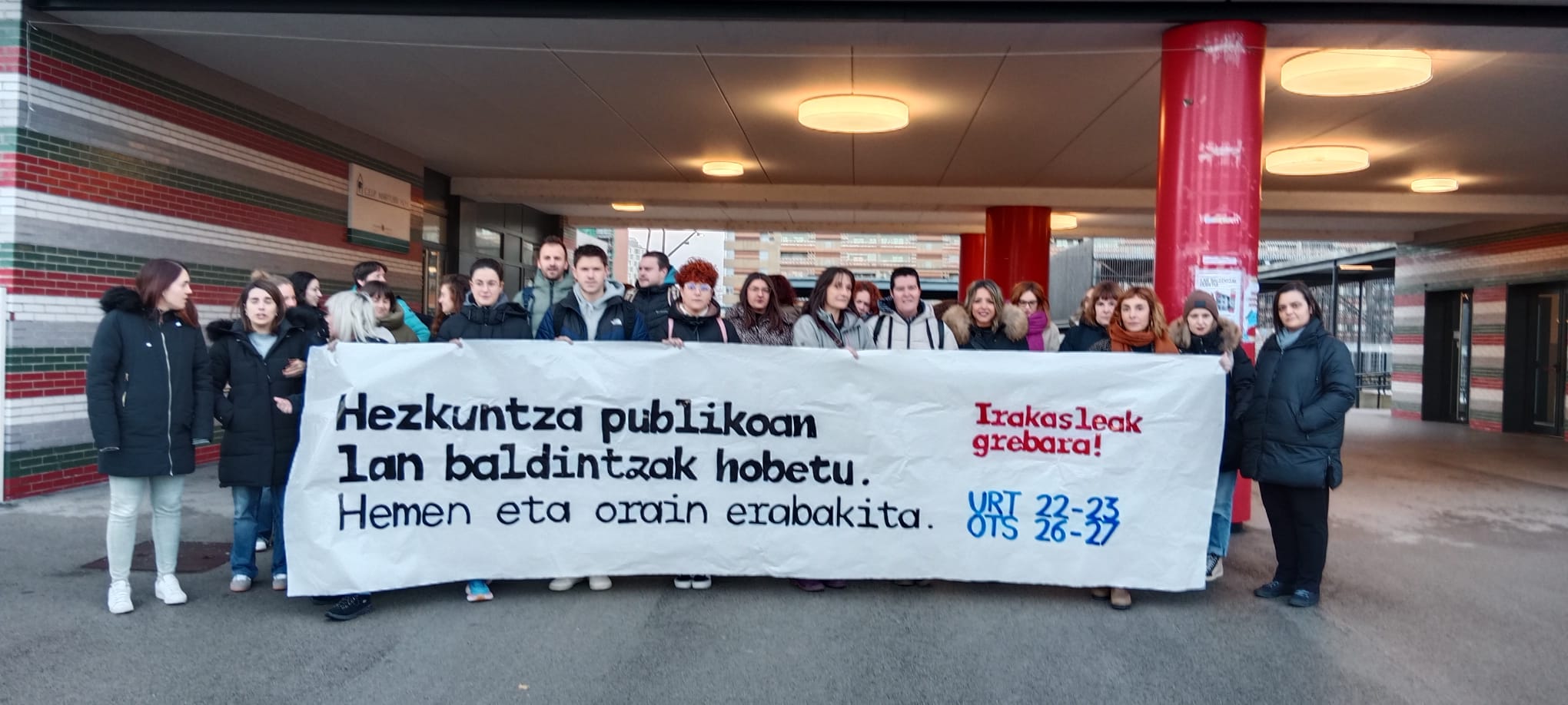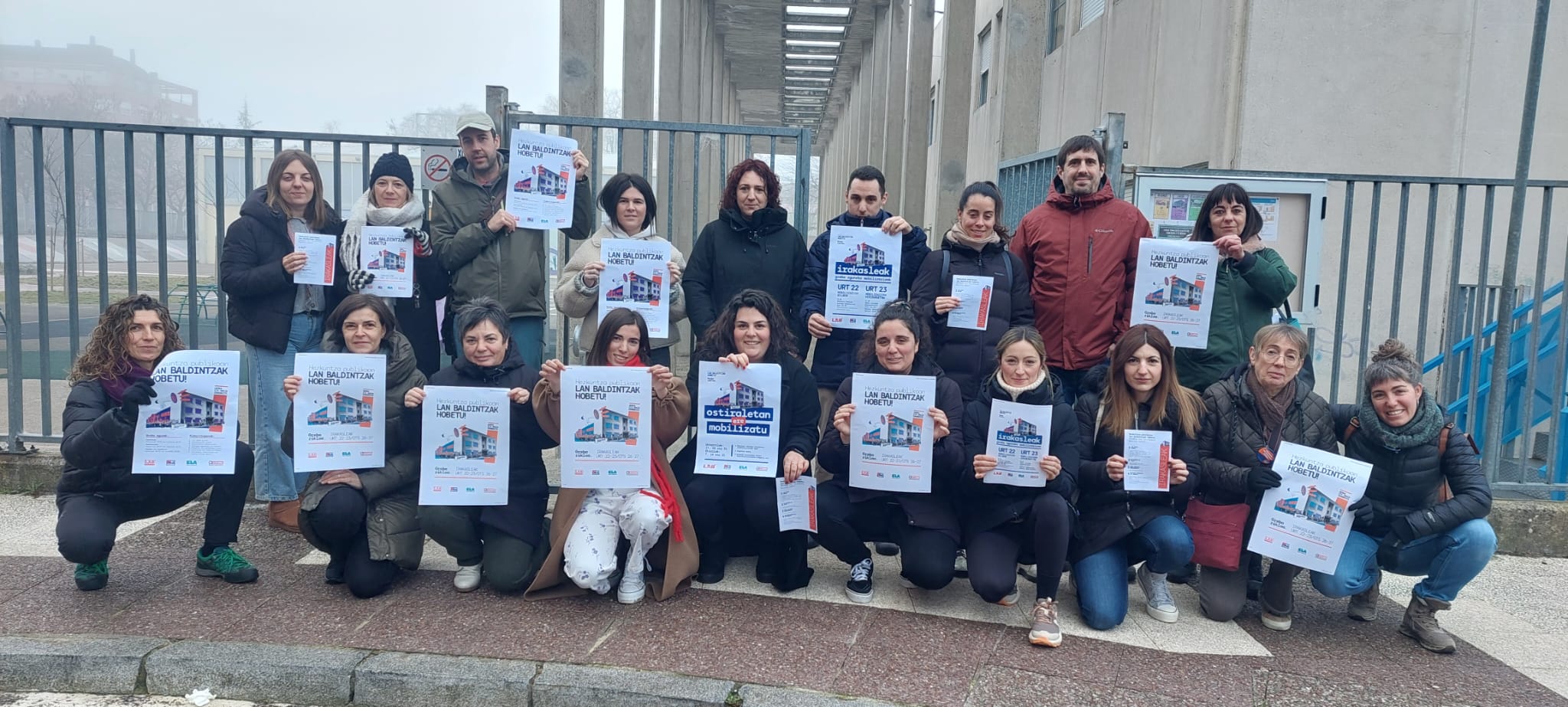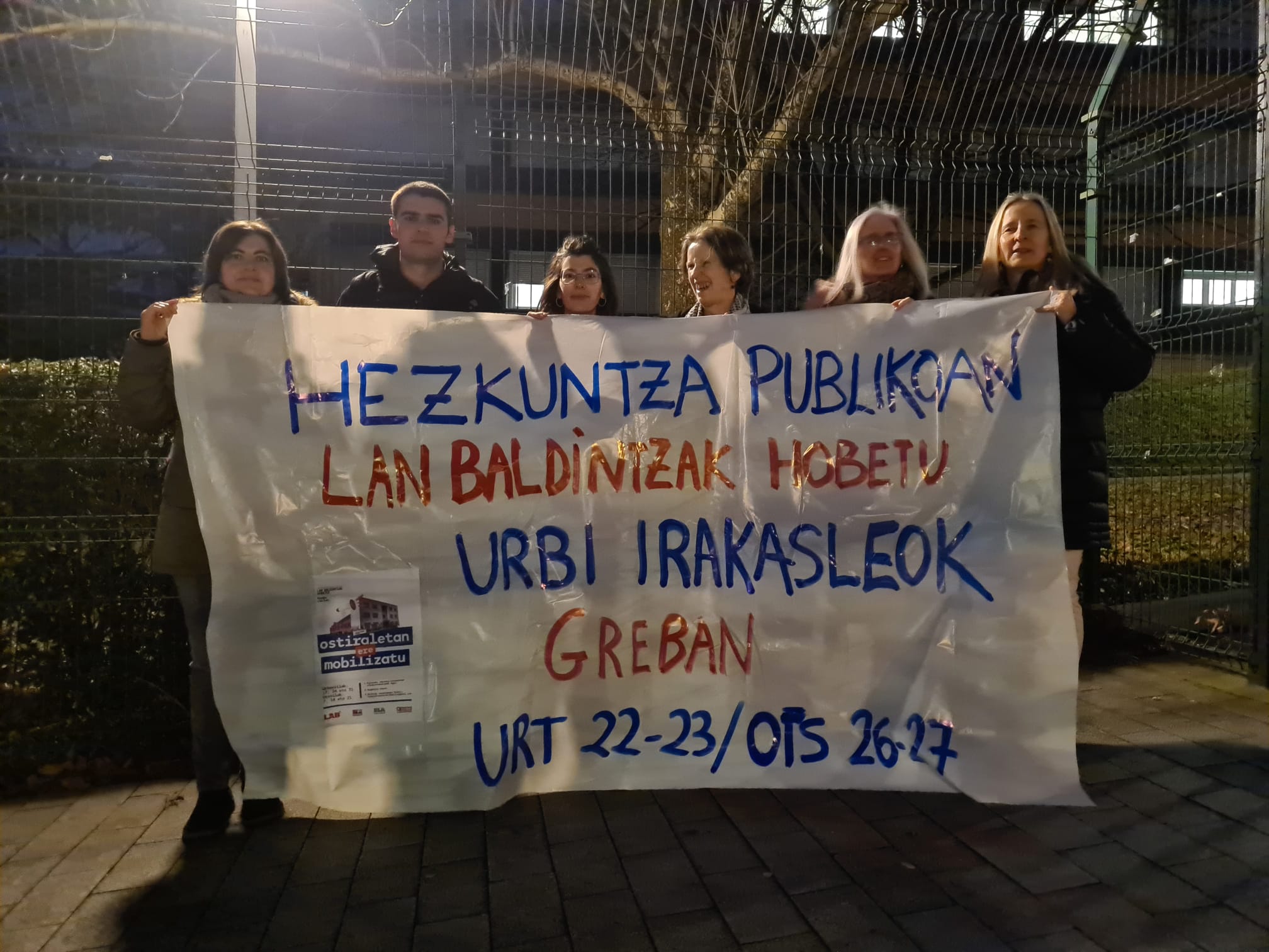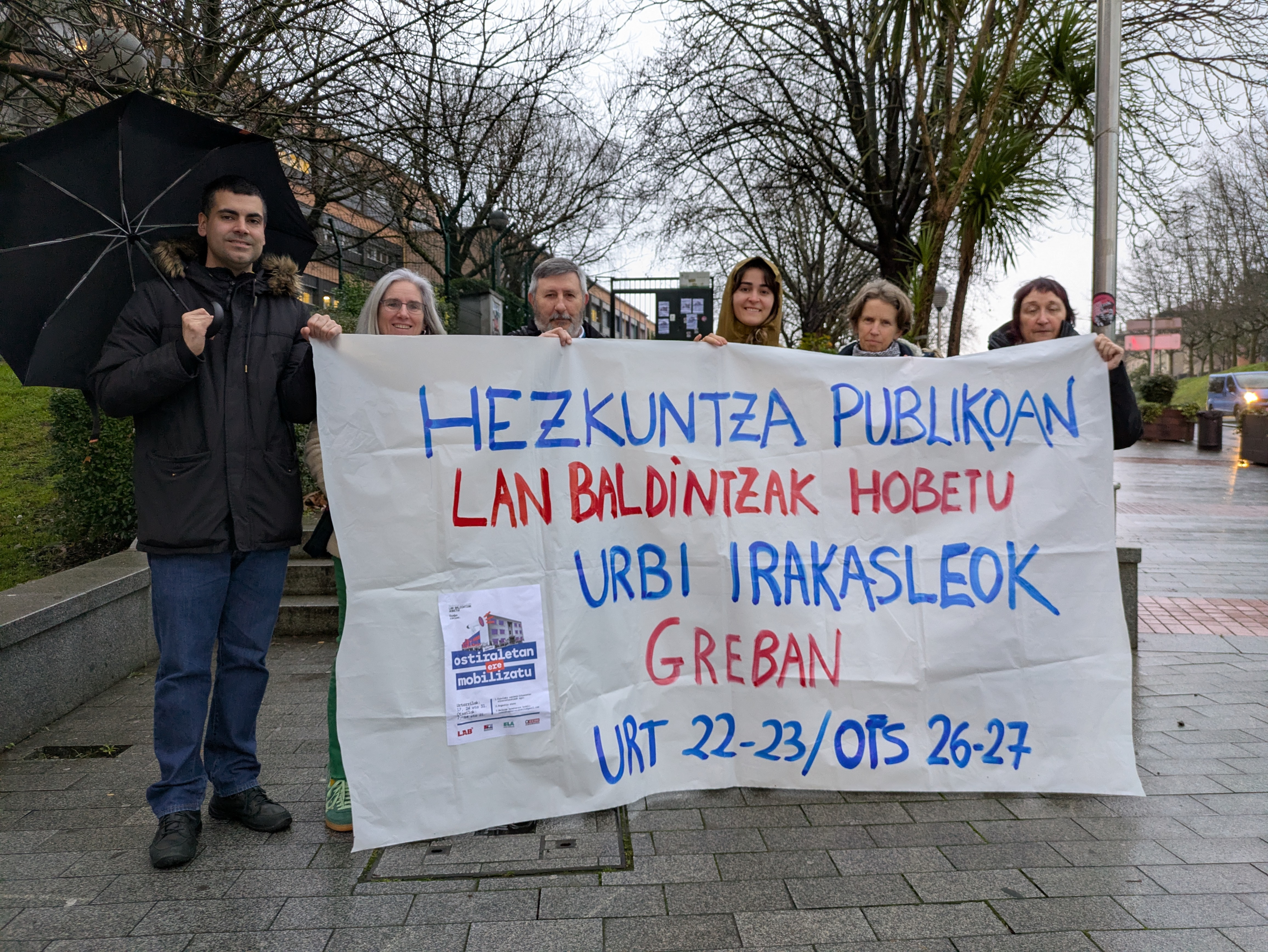 LAB, STEILAS, ELA eta CCOO sindikatuok aurkeztutako mobilizazio eta greba dinamikarekin batera, urtarrilaren 17an, 24an eta 31n eta otsailaren 7an, 14an eta 21ean irteera-sarreretan elkarretaratzeak egitera deitzen zaituztegu.