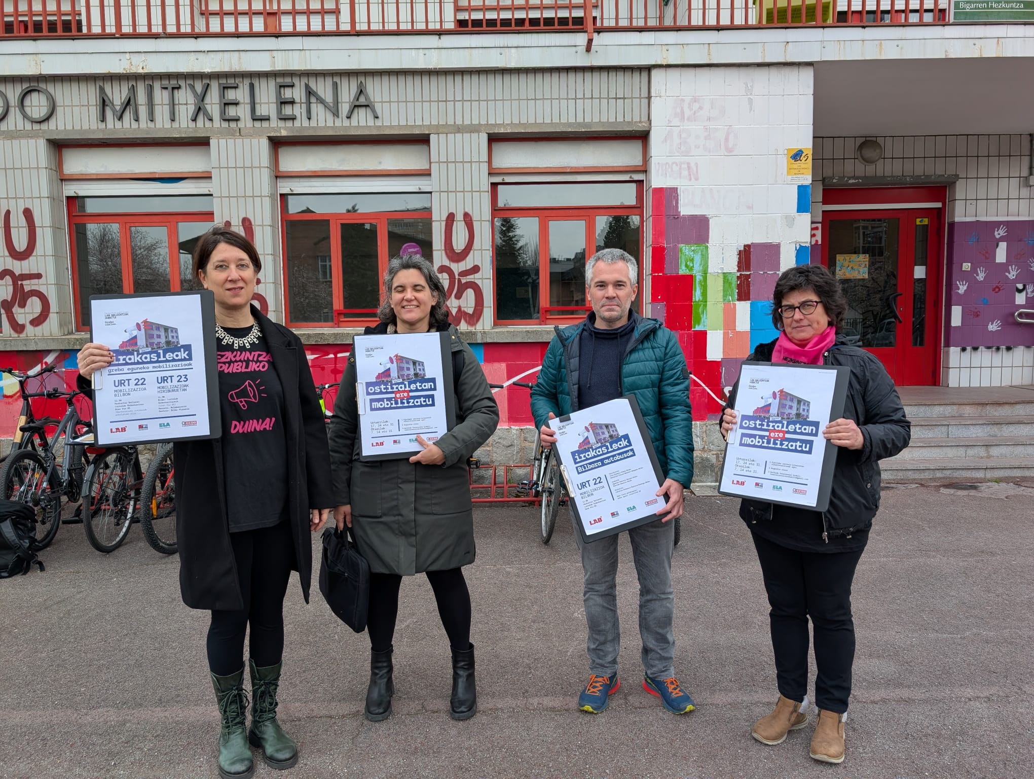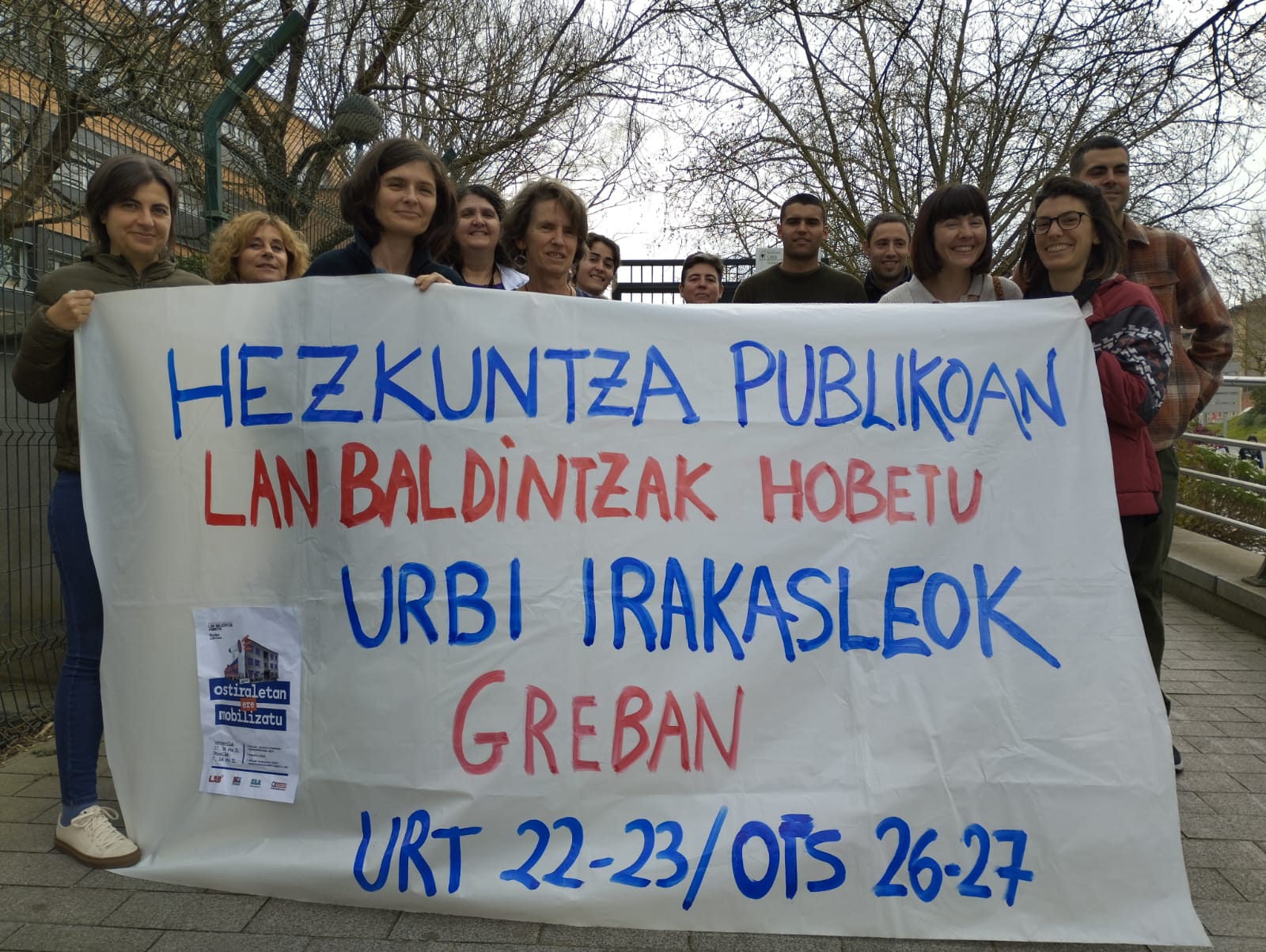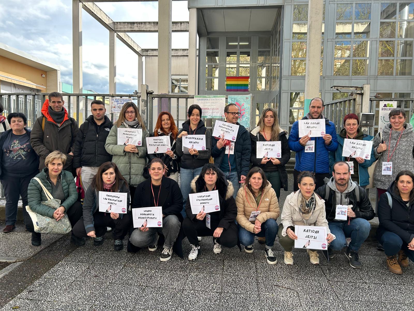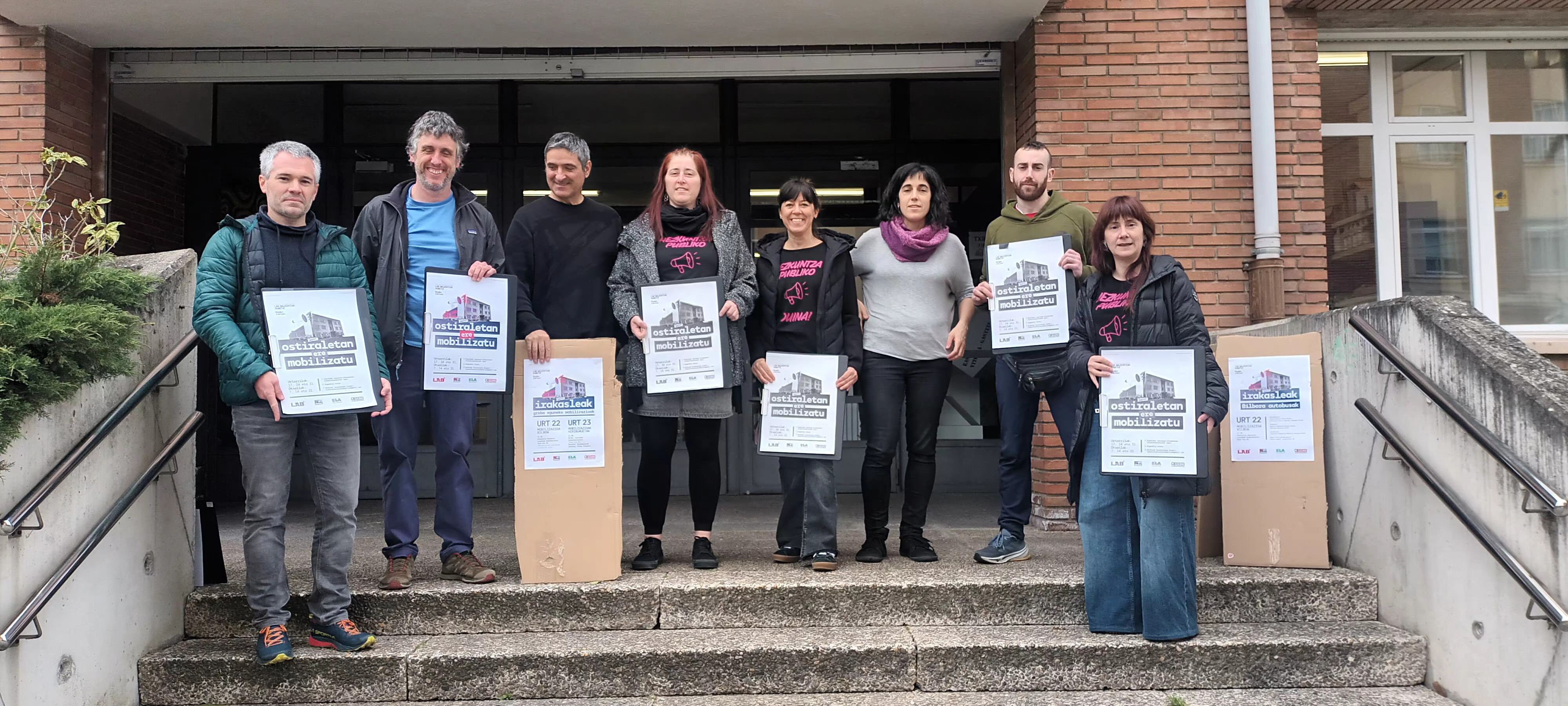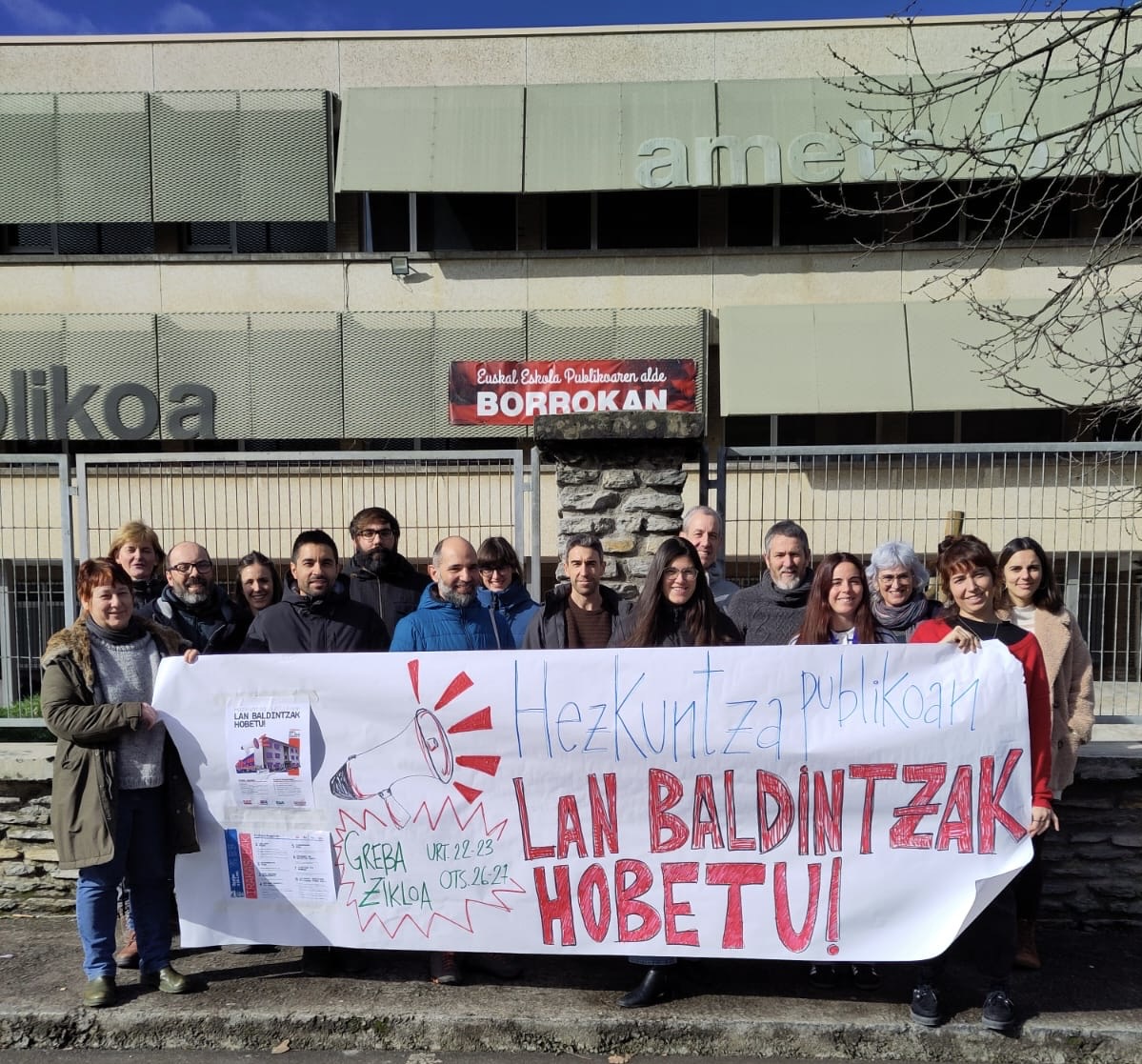 LAB, STEILAS, ELA eta CCOO sindikatuok aurkeztutako mobilizazio eta greba dinamikarekin batera, urtarrilaren 17an, 24an eta 31n eta otsailaren 7an, 14an eta 21ean irteera-sarreretan elkarretaratzeak egitera deitzen zaituztegu.