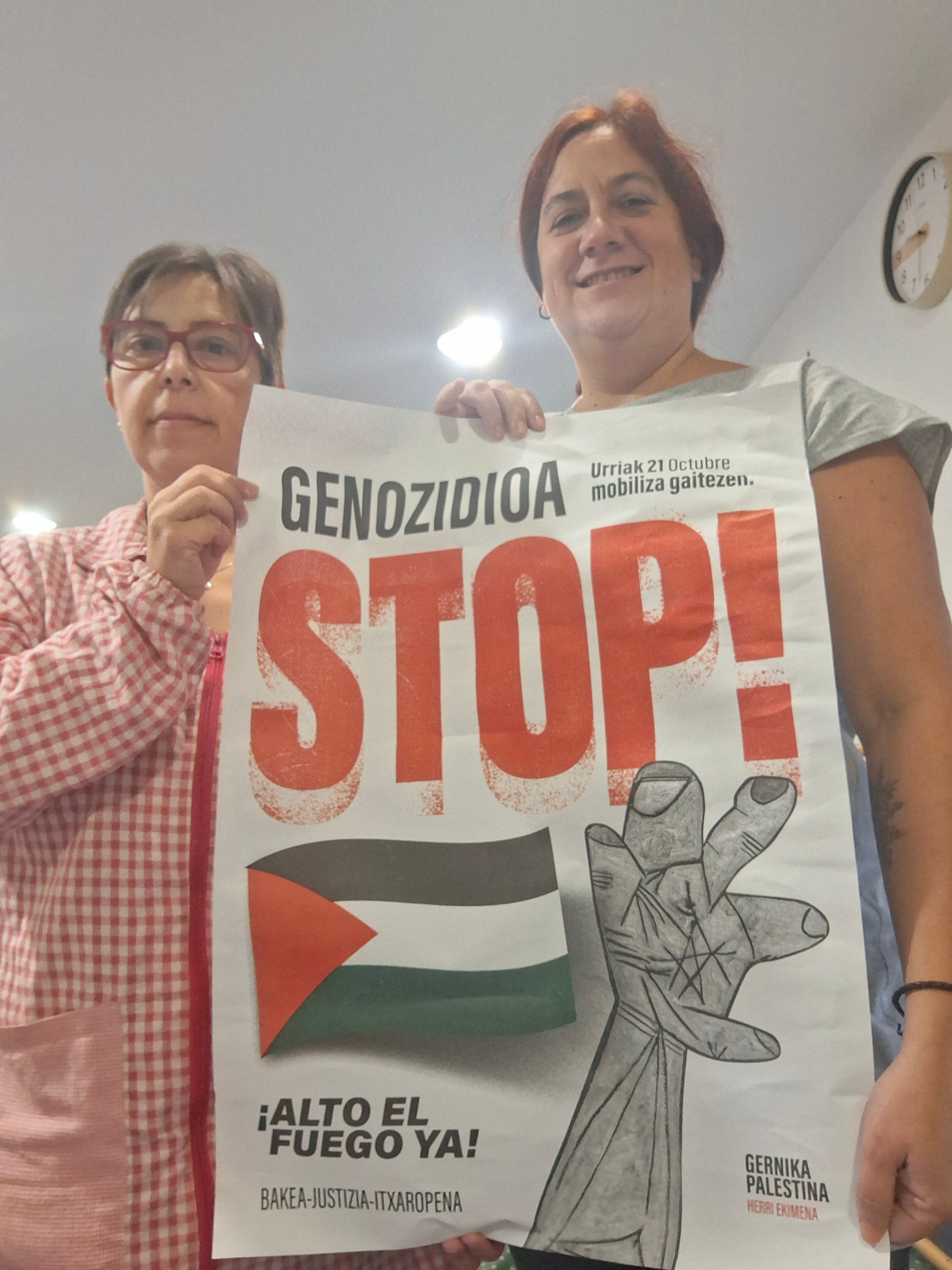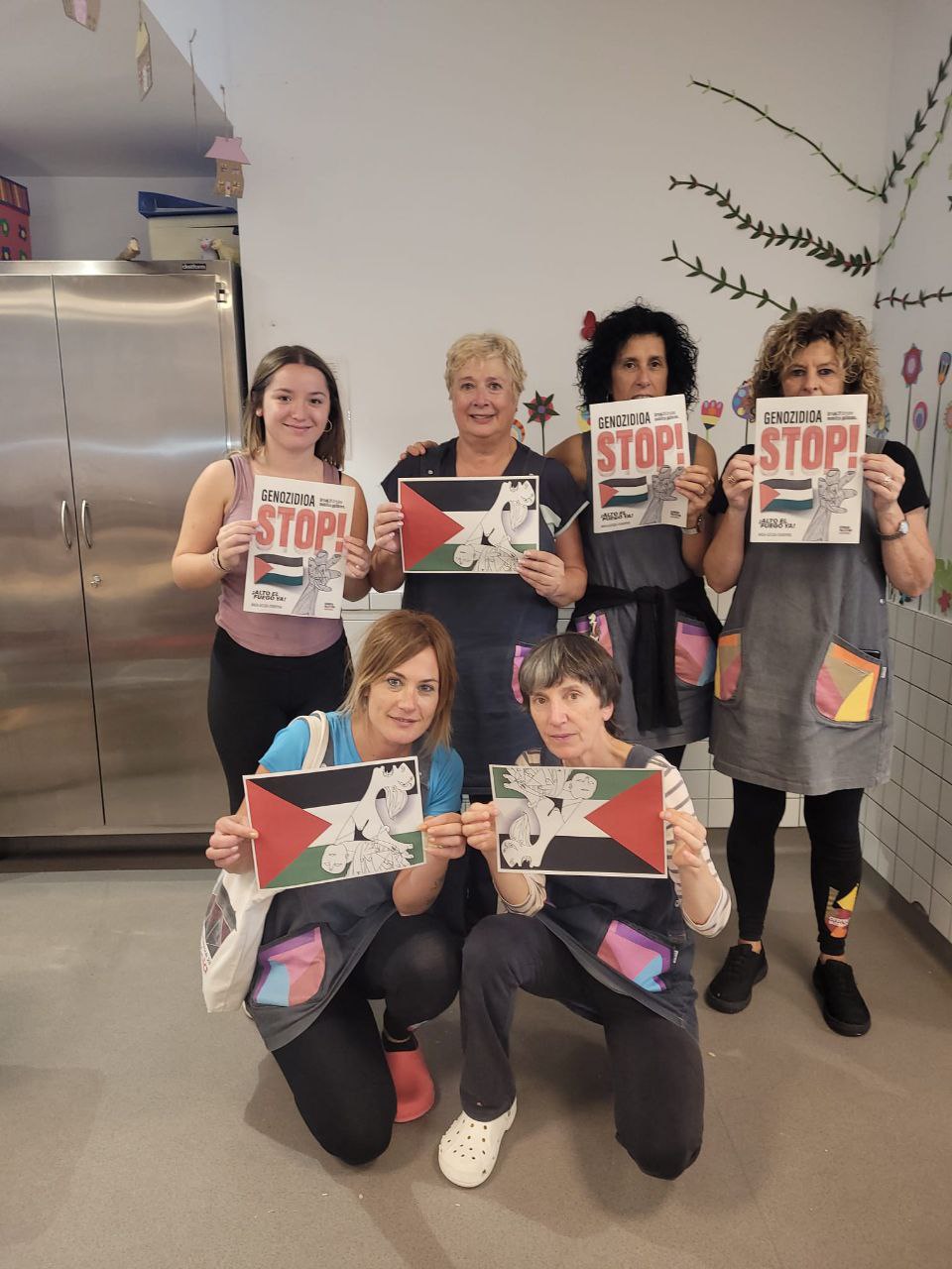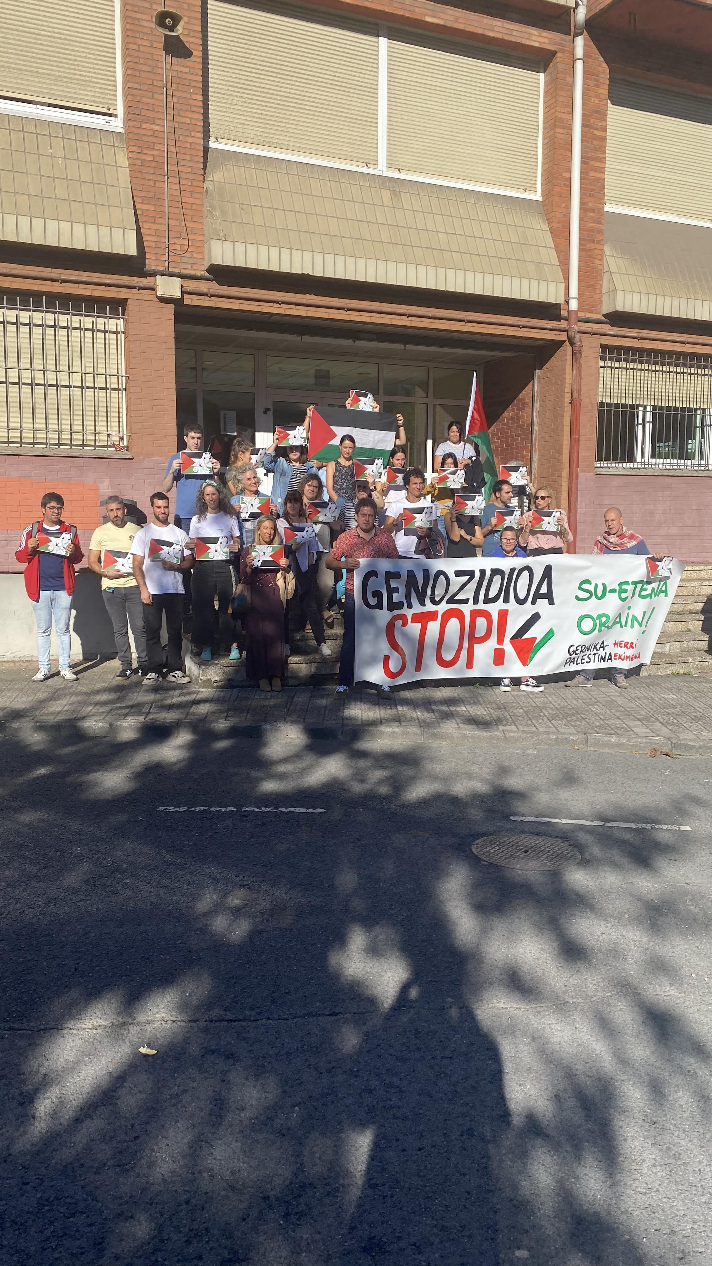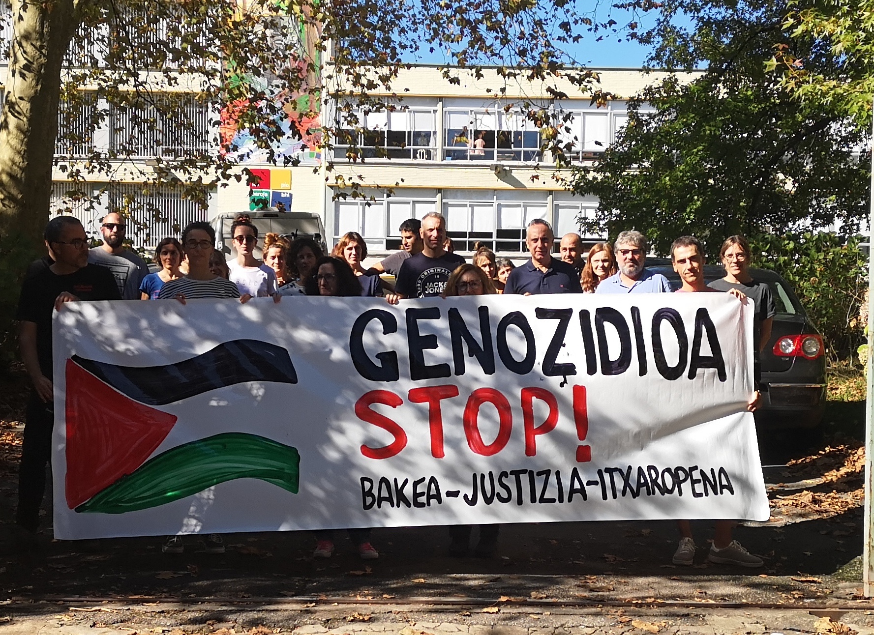“Euskal Herriko langileon ikuspegia garbi geratzen da: gu Palestinako herriarekin gaude eta genozidioaren kontra”, gaineratu du Arroyok eta Euskal Herriko erakunde publiko eta patronalak interpelatu ditu jarraian. “Zein da zuen posizioa? Nolako jarrera hartuko duzue genozidio honen eta bereziki, berau bultzatzen ari den sionismoaren aurrean? Hemengo erakunde publikoei eta patronalari exijitzen diegu genozidekin harremanak apurtzeko, genozidak presionatzeko eta haiekin negoziorik ez egiteko, momentu latz hauetan”.