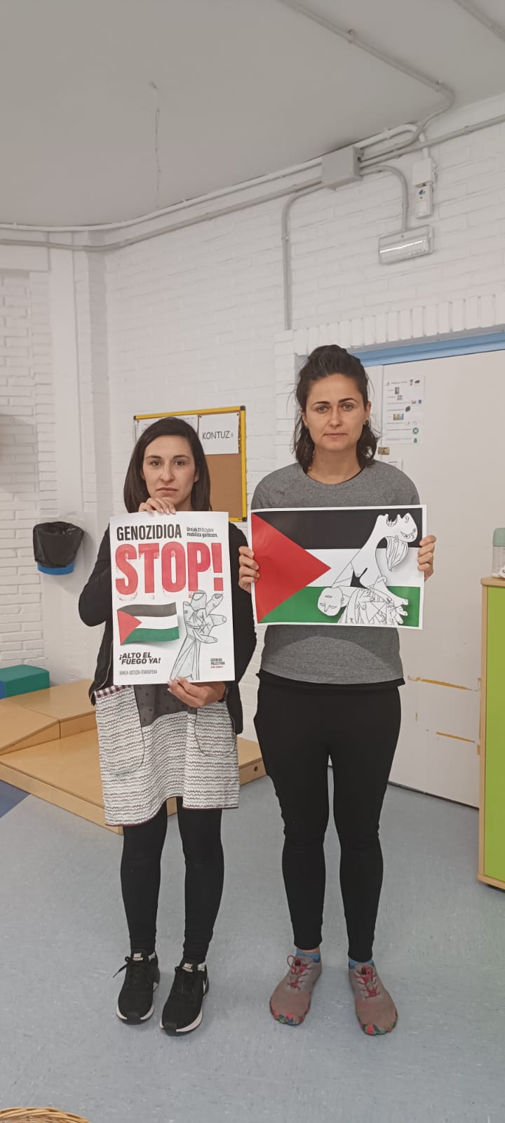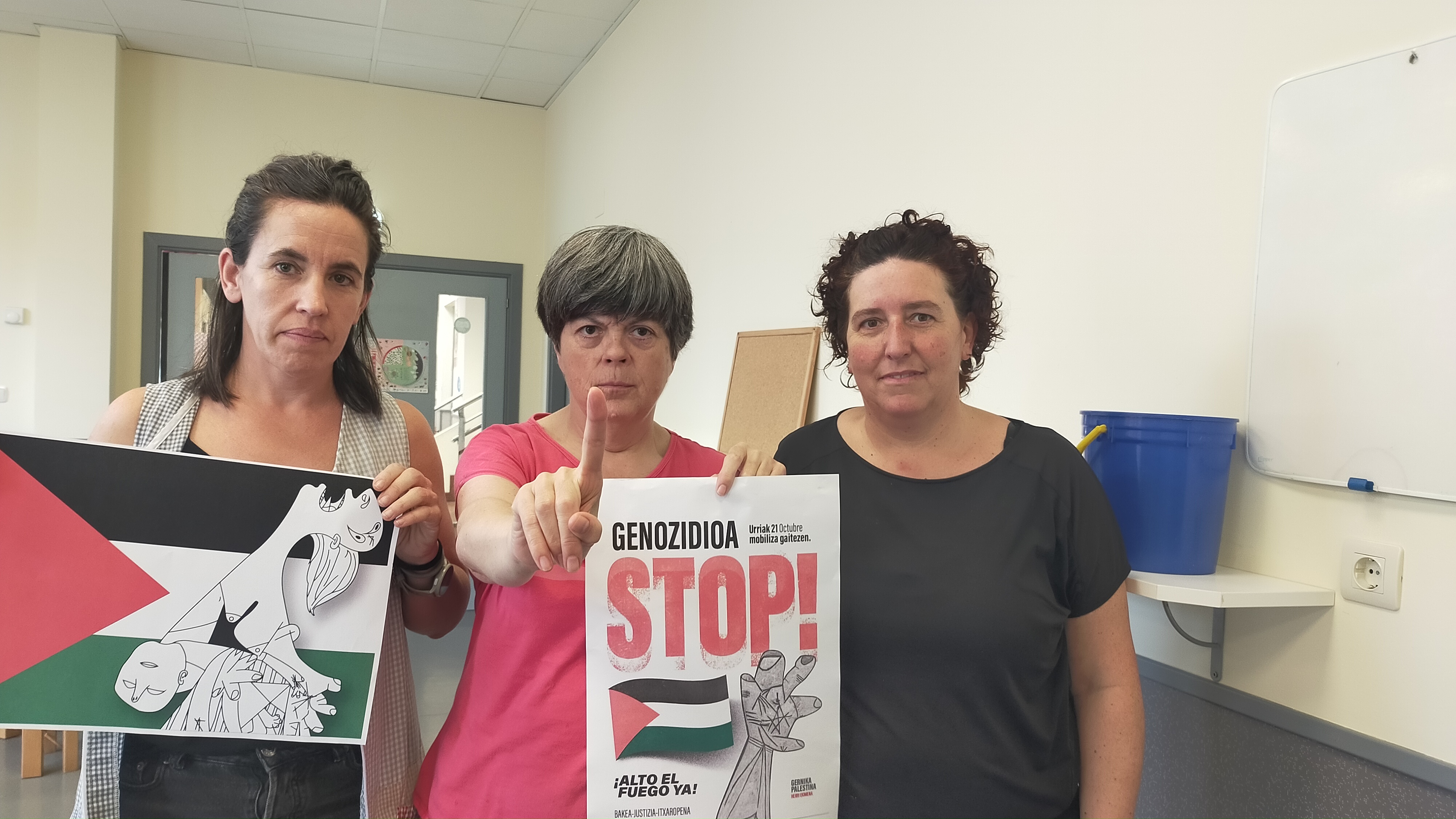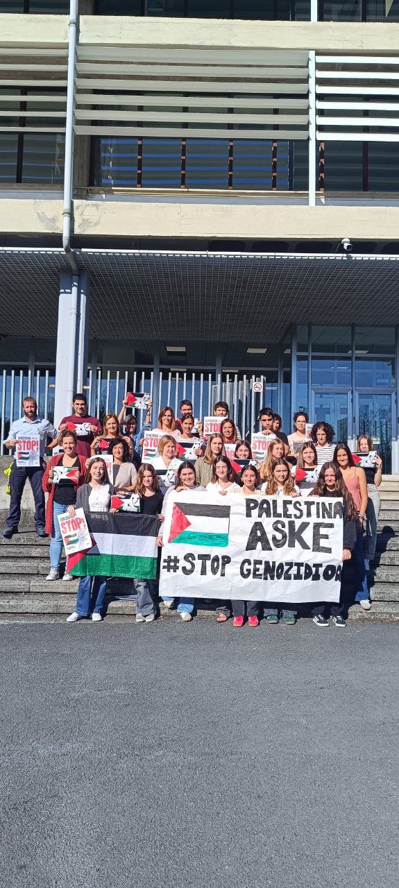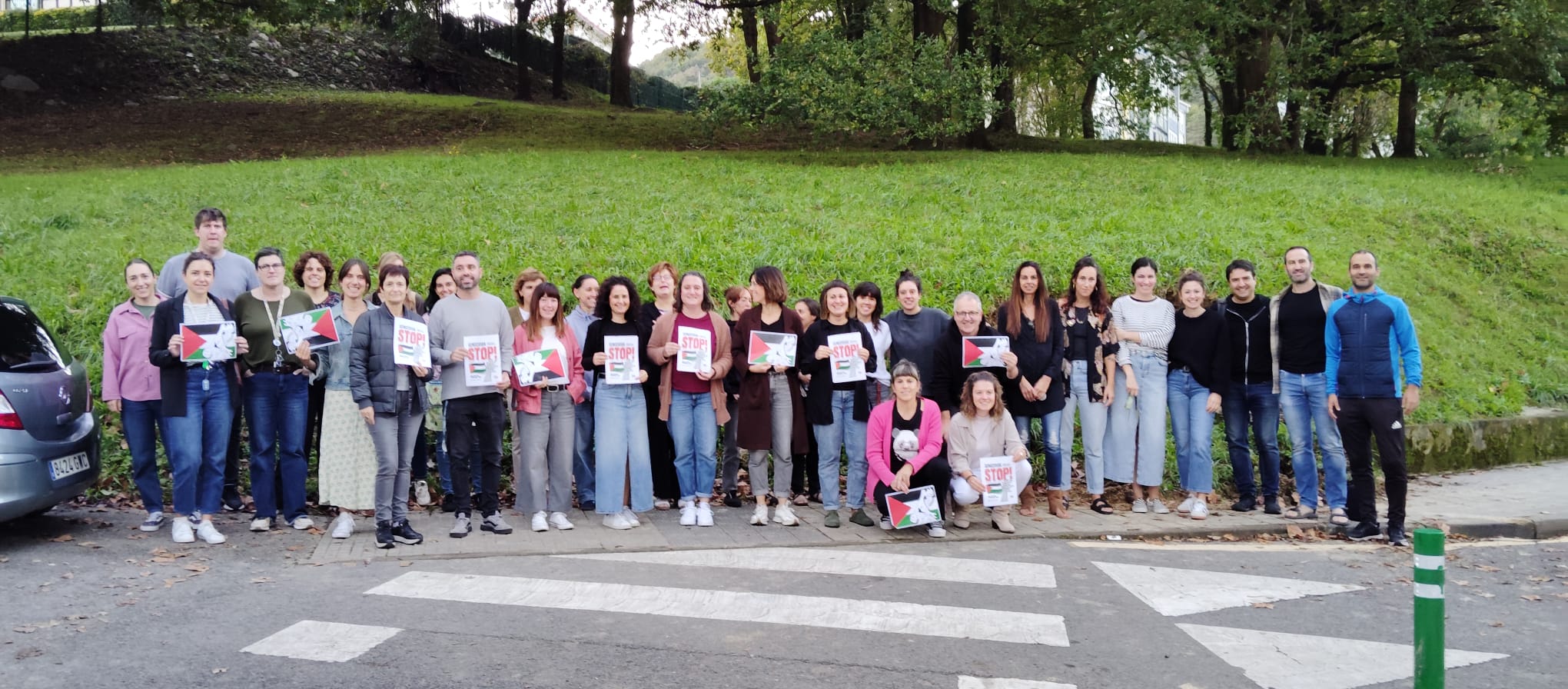 “Euskal Herriko langileon ikuspegia garbi geratzen da: gu Palestinako herriarekin gaude eta genozidioaren kontra”, gaineratu du Arroyok eta Euskal Herriko erakunde publiko eta patronalak interpelatu ditu jarraian. “Zein da zuen posizioa? Nolako jarrera hartuko duzue genozidio honen eta bereziki, berau bultzatzen ari den sionismoaren aurrean? Hemengo erakunde publikoei eta patronalari exijitzen diegu genozidekin harremanak apurtzeko, genozidak presionatzeko eta haiekin negoziorik ez egiteko, momentu latz hauetan”.