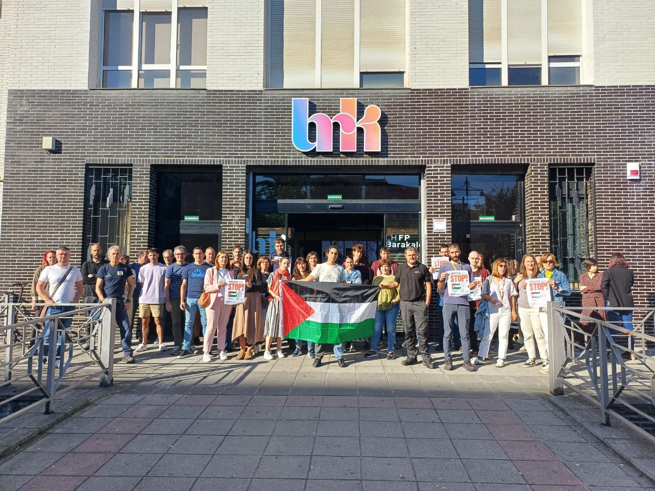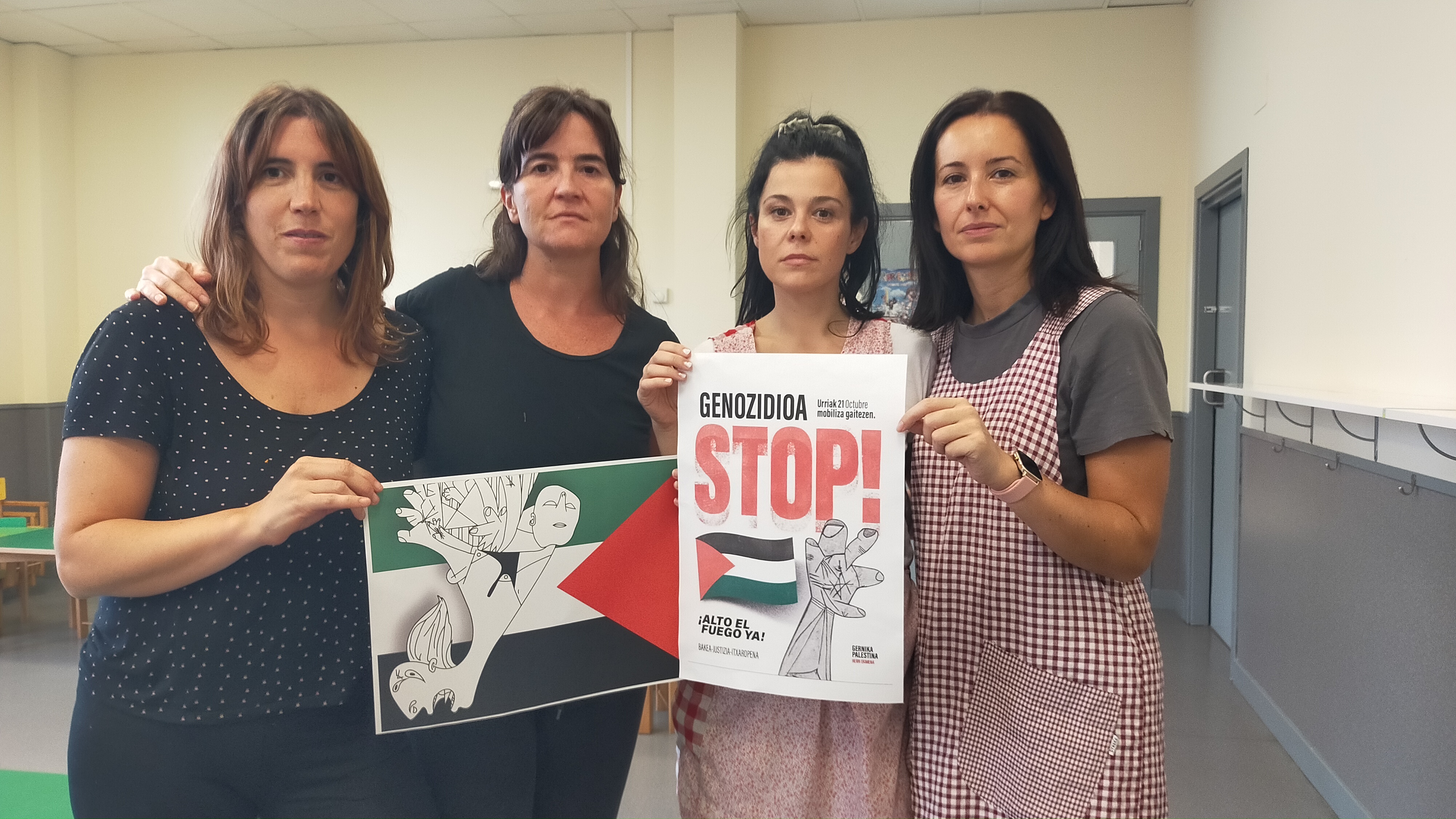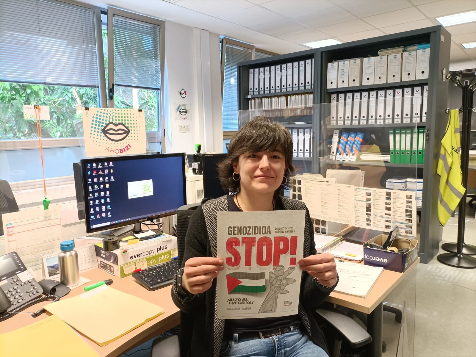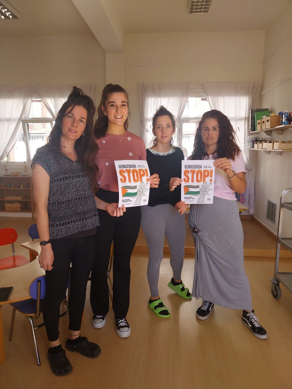 “Euskal Herriko langileon ikuspegia garbi geratzen da: gu Palestinako herriarekin gaude eta genozidioaren kontra”, gaineratu du Arroyok eta Euskal Herriko erakunde publiko eta patronalak interpelatu ditu jarraian. “Zein da zuen posizioa? Nolako jarrera hartuko duzue genozidio honen eta bereziki, berau bultzatzen ari den sionismoaren aurrean? Hemengo erakunde publikoei eta patronalari exijitzen diegu genozidekin harremanak apurtzeko, genozidak presionatzeko eta haiekin negoziorik ez egiteko, momentu latz hauetan”.