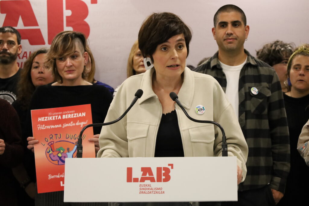 LABek zer-nolako hezkuntza sistema defendatzen duen gogoratuz hasi du agerraldia Garbiñe Aranburu LABeko koordinatzaile orokorrak: “LABek Euskal Eskola Publiko Komunitarioa defendatzen du. Burujabea izango den eta sare publiko berri bakar deszentralizatuan antolatuko den hezkuntza eredu propio eta berria sortzeaz ari gara: unibertsala eta doakoa; euskararen murgiltze eta mantentzen ereduan oinarritutakoa; euskal kurrikulumean oinarrituko dena; inklusibitatea oinarri izango duena; laikoa; pedagogia feminista bultzatuko duena eta ikastetxeen autonomia eta hezkuntza komunitatearen parte hartzea sustatuko duena”.
