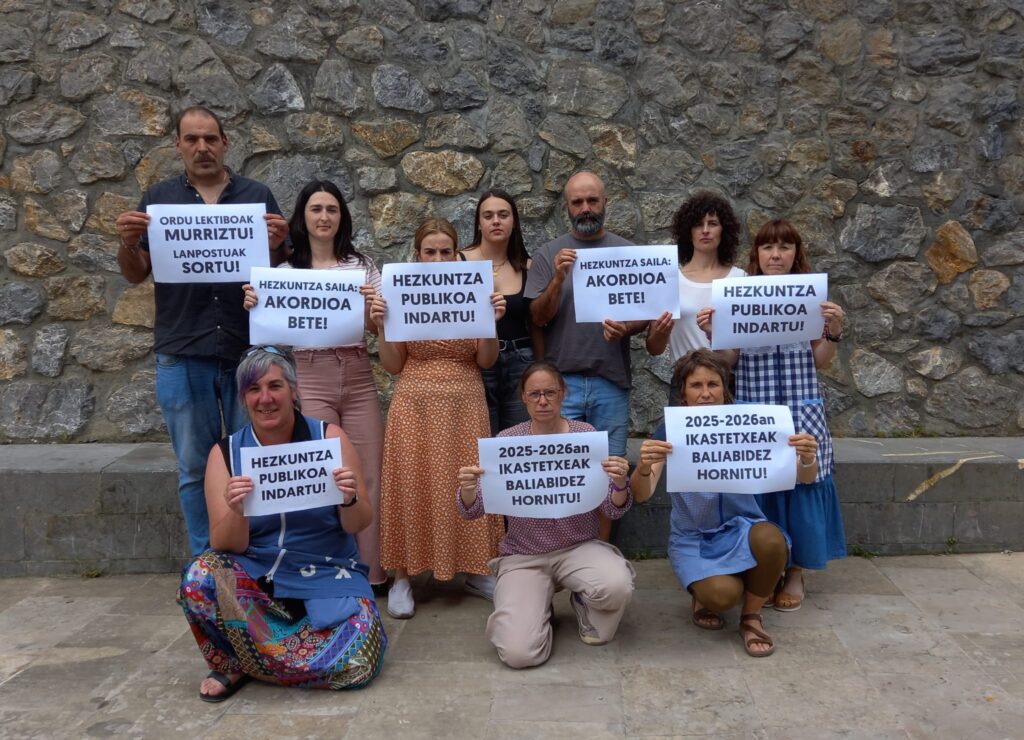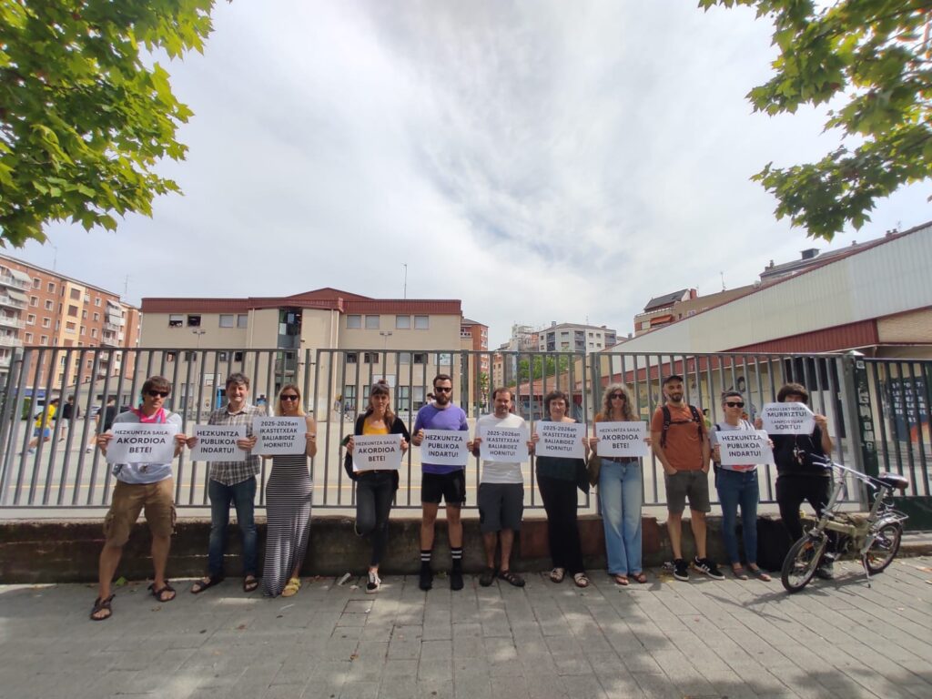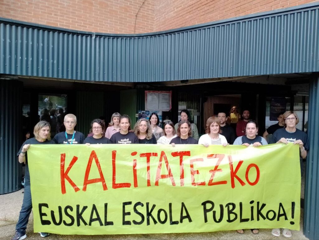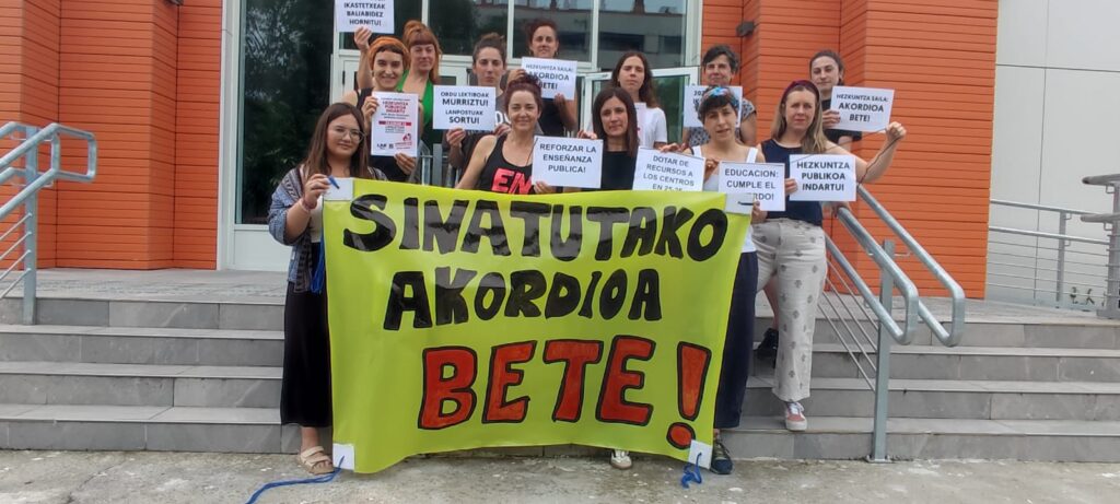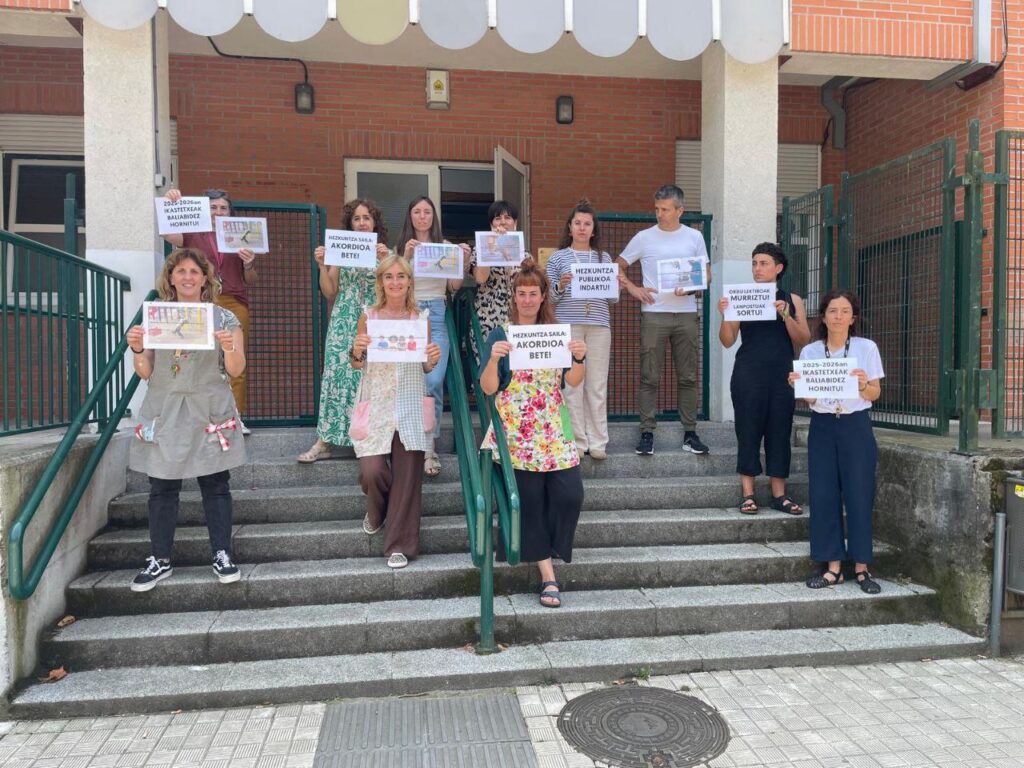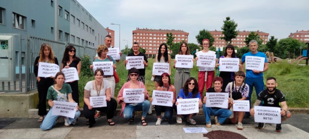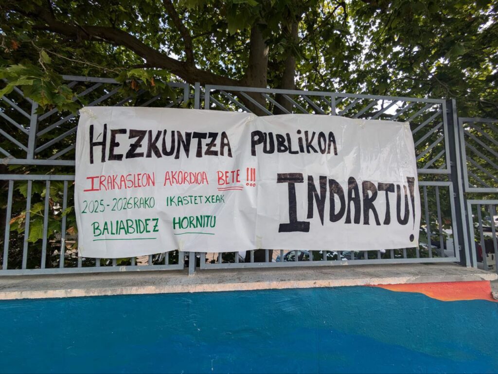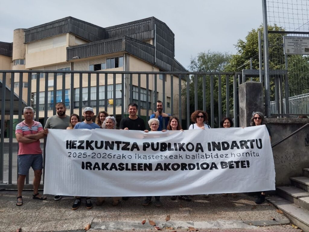 LABek deituta, Araba, Bizkaia eta Gipuzkoako hezkuntza publikoko irakasleek lanuzteak eta mobilizazioak egin dituzte, Hezkuntza Sailari marketing kanpaina alboratu, sinatutako akordioa bere osotasunean bete eta 2025-26 ikasturtean ikastetxeak hornitu ditzan exijitzeko.