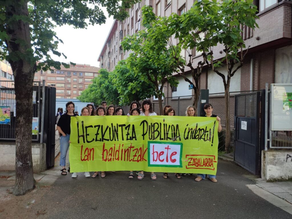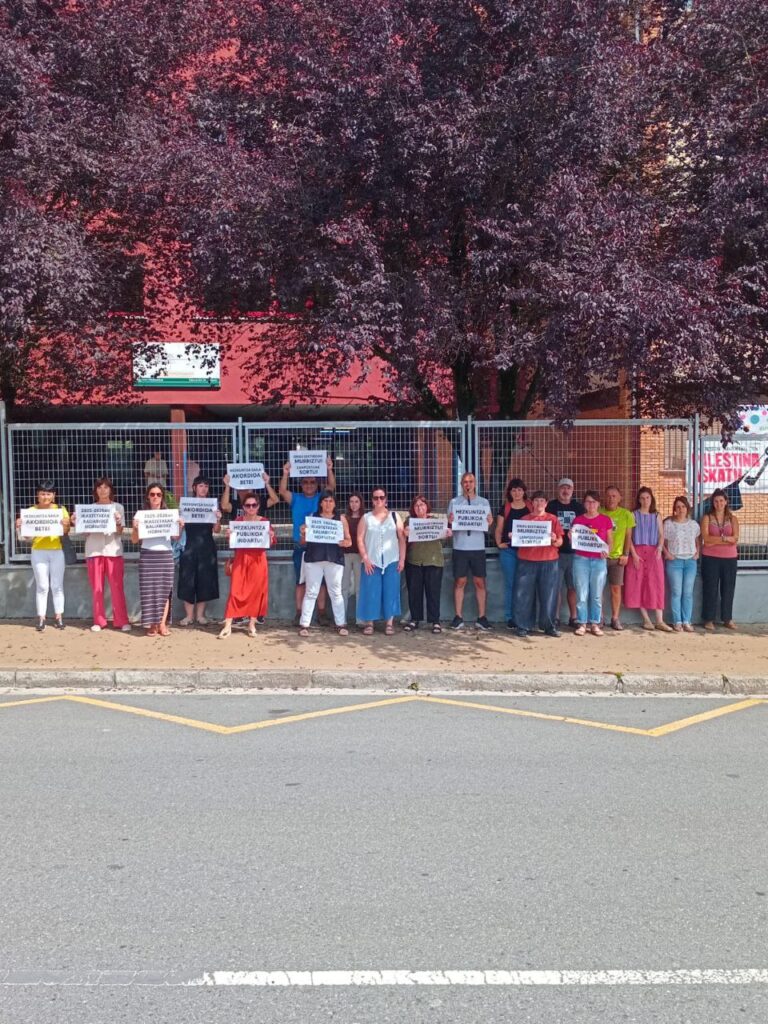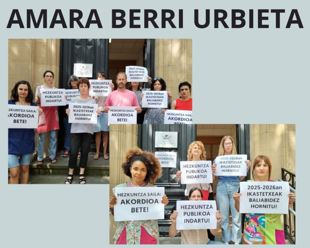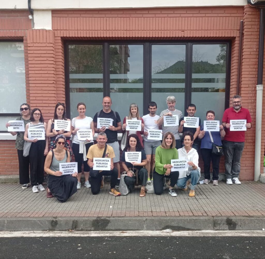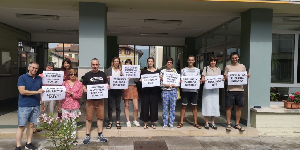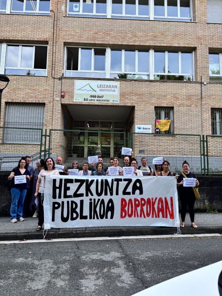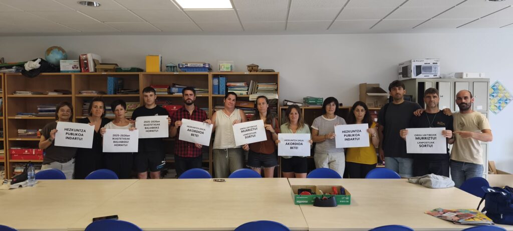 LABek deituta, Araba, Bizkaia eta Gipuzkoako hezkuntza publikoko irakasleek lanuzteak eta mobilizazioak egin dituzte, Hezkuntza Sailari marketing kanpaina alboratu, sinatutako akordioa bere osotasunean bete eta 2025-26 ikasturtean ikastetxeak hornitu ditzan exijitzeko.