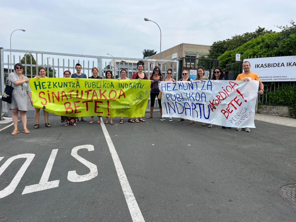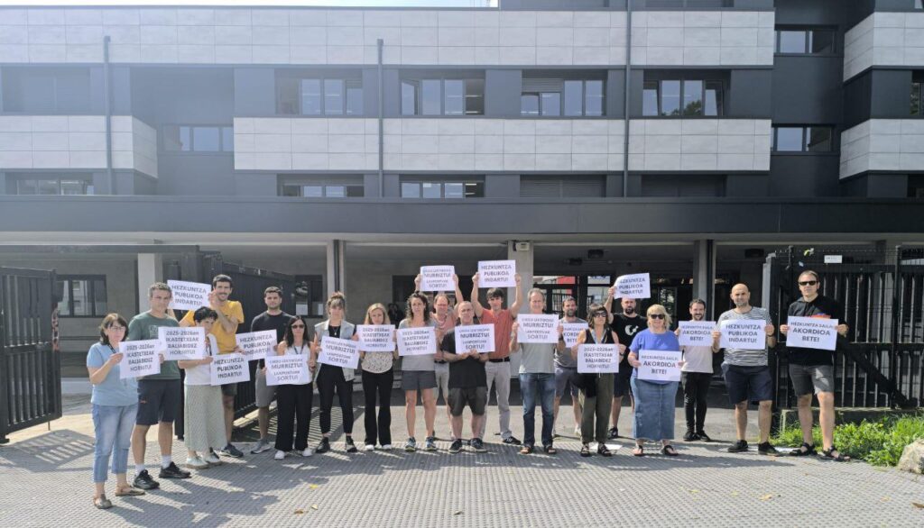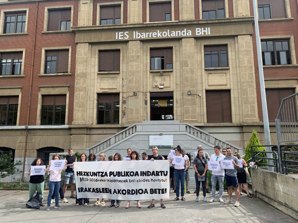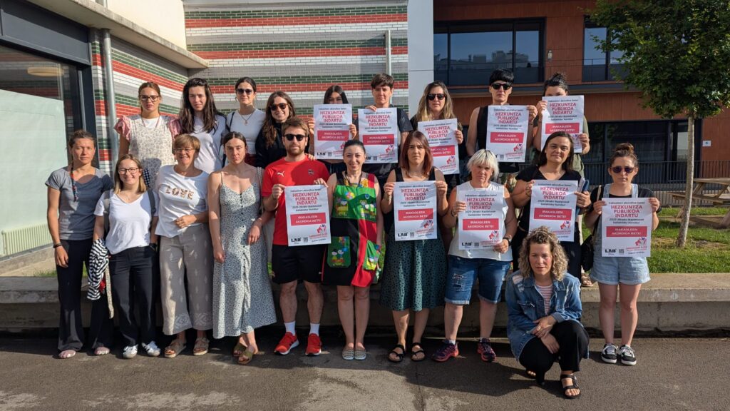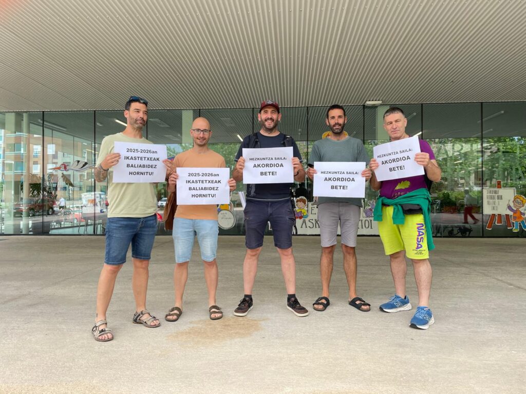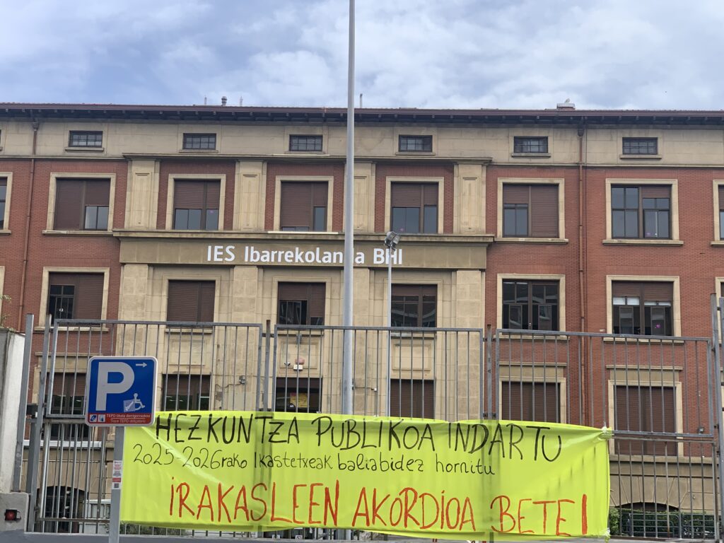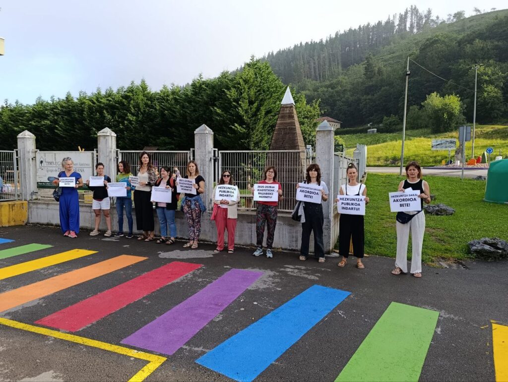 LABek deituta, Araba, Bizkaia eta Gipuzkoako hezkuntza publikoko irakasleek lanuzteak eta mobilizazioak egin dituzte, Hezkuntza Sailari marketing kanpaina alboratu, sinatutako akordioa bere osotasunean bete eta 2025-26 ikasturtean ikastetxeak hornitu ditzan exijitzeko.