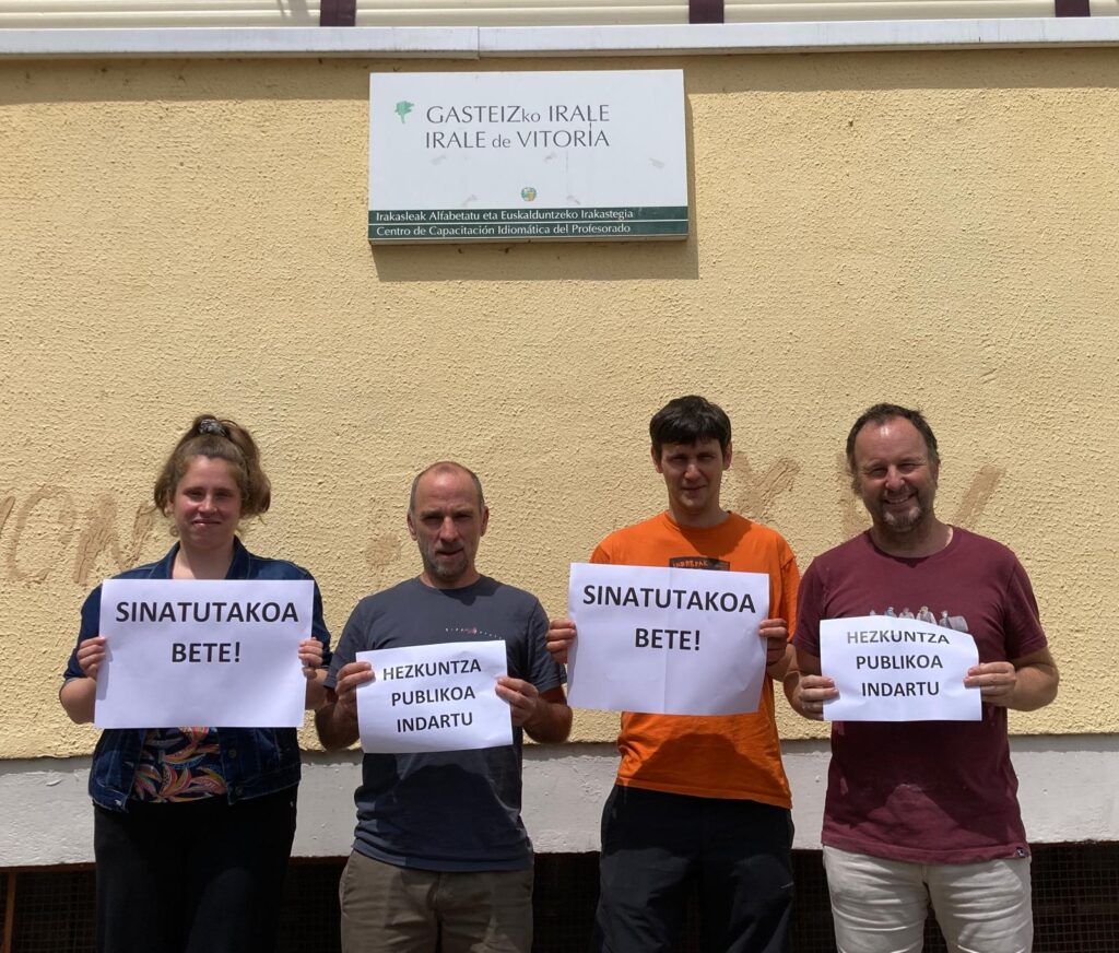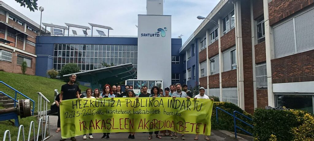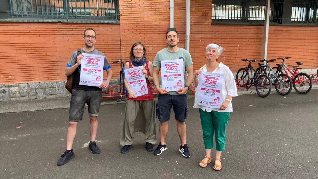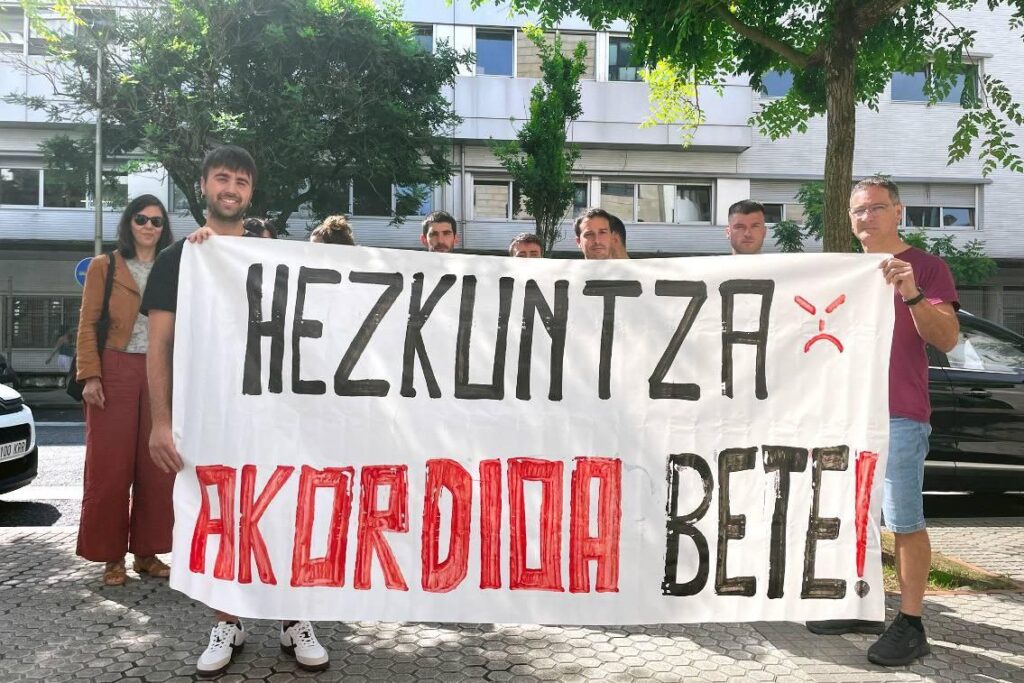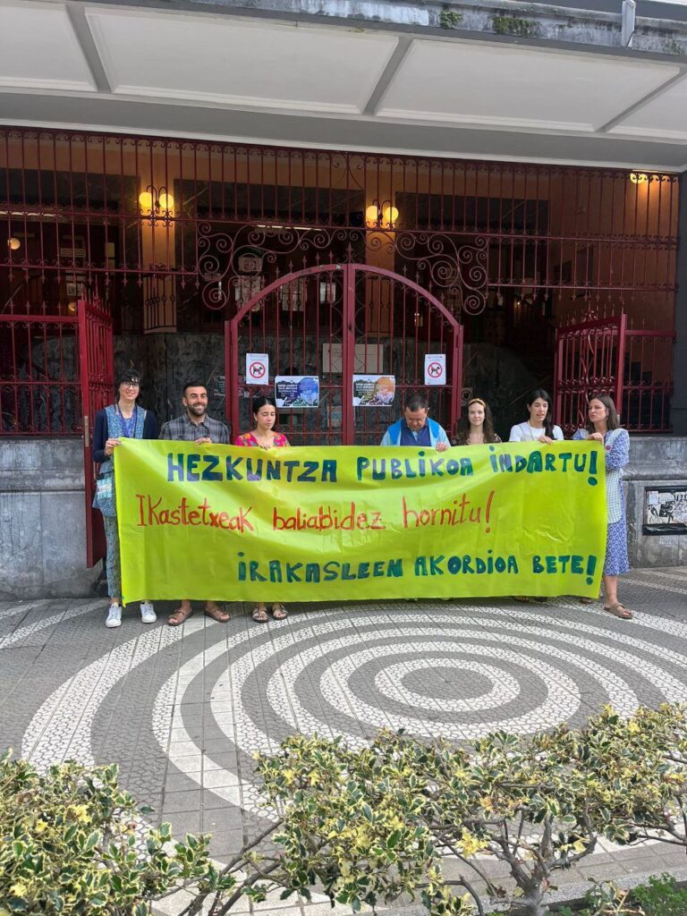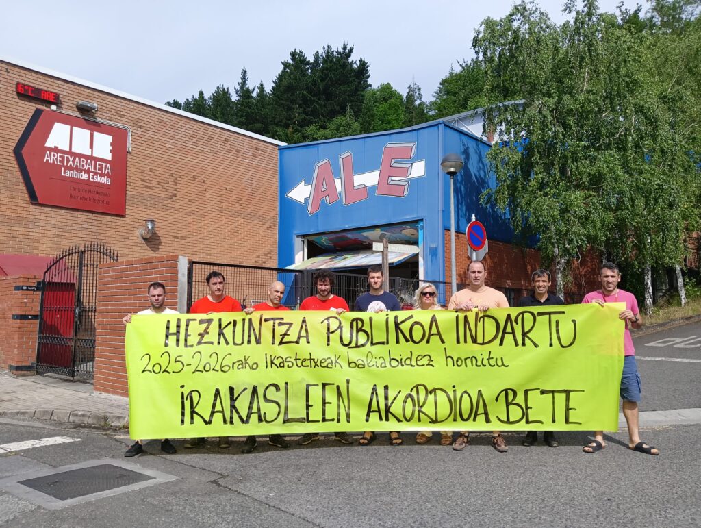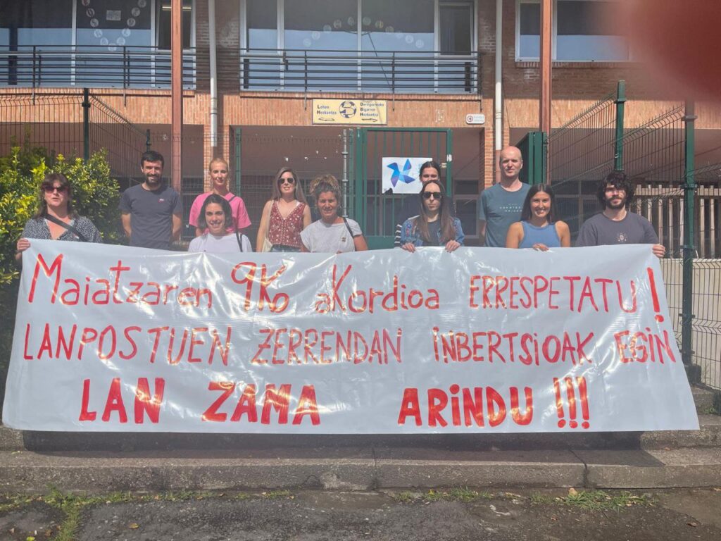 LABek deituta, Araba, Bizkaia eta Gipuzkoako hezkuntza publikoko irakasleek lanuzteak eta mobilizazioak egin dituzte, Hezkuntza Sailari marketing kanpaina alboratu, sinatutako akordioa bere osotasunean bete eta 2025-26 ikasturtean ikastetxeak hornitu ditzan exijitzeko.