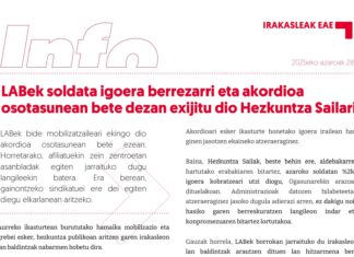 Hezkuntza Saila ostrukarena egiten ari da. LABek Haurreskolak Partzuergo Publikoaren zuzendaritza batzordeari eta Hezkuntza Sailari exijitzen die 2025eko otsailaren 10ean sinatutako Haurreskolak Partzuergoko lan...