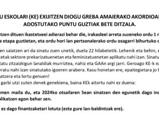 LABetik salatzen dugu Hezkuntza Sailak eta Haurreskolak Partzuergoak adostutakoa eta hartutako konpromiso guztiak ez direla betetzen ari eta garatzeko dauden gaiak aurrera eramateko ez...