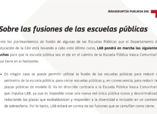 LAB ha puesto sobre la mesa una propuesta clara: que en las mesas negociadoras de educación también se trabajen el diagnóstico y las medidas relacionadas con la segregación, para que sean consensuadas y aprobadas...