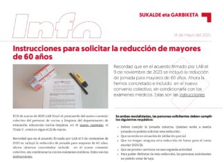 Teniendo vigente el convenio laboral firmado por LAB en marzo, se abre la posibilidad de solicitar una reducción acumulada por edad...