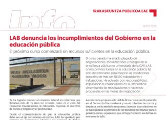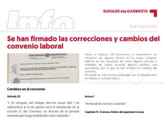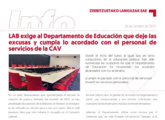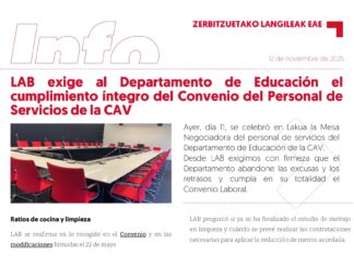 Personal de Servicios de la CAV: LAB exige al Departamento de Educación el cumplimiento...