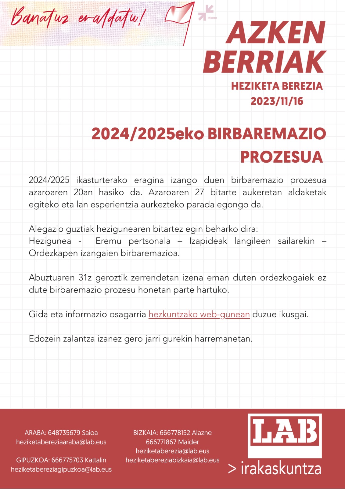 LAB sindikatua Hezkuntzan eta Irakaskuntzan